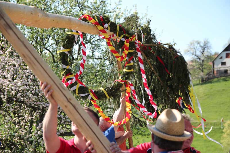 Sveti Štefan, 22. 04. 2018 – Člani Prostovoljnega gasilskega društva (PGD) Sveti Štefan že vrsto let na star način postavljajo mlaj. Tudi letos so se odločili za postavitev, ki je bila še v večjem številu udeležencev, saj jih je bilo okoli 70. Smreko, ki jo je priskrbela krajevna skupnost Sveti Štefan, so najprej okrasili, nakar so domačim članom pri postavljanju pomagala naslednja društva: prijateljsko društvo PGD Študa, Makole, Loka pri Žusmu, Slivnica pri Celju, ter člani društva Šentjur. »Zelo sem ponosna, da se nam je pridružilo veliko gasilskih prijateljev in krajanov, s katerimi smo preživeli čudovito sončno nedeljo,« je povedala Marjanca Žaberl, predsednica PGD Sveti Štefan. Postavitvi mlaja so se pridružili tudi predstavniki društev Svetega Štefana in krajani Svetega Štefana. (Milenka Blažević, foto: Sebastjan Čuden in Uroš Pintar)
