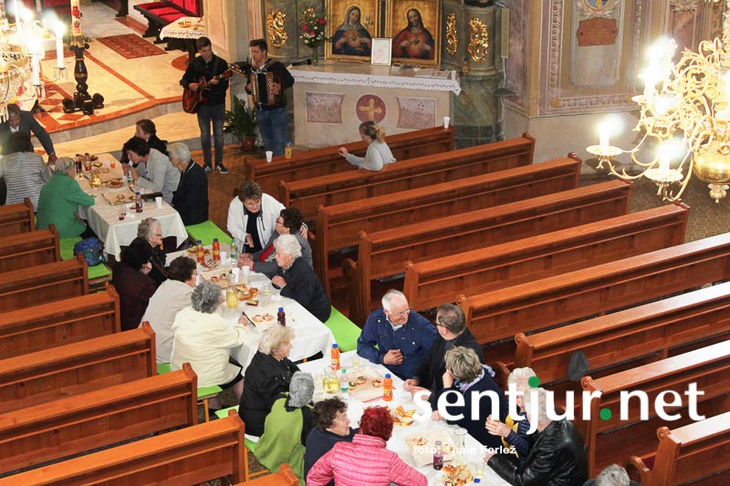 Pri sveti maši so med drugim starejši prejeli zakrament bolniškega maziljenja. Po prejetih zakramentih in končani sveti maši so starejši nadaljevali druženje v cerkvi. Sodelavci Karitas so zanje pripravili hrano in pijačo, tako da se je druženje nadaljevalo v prijetnem duhu še naprej. Starejši so tako med sabo malce poklepetali in si izmenjali kakšno spodbudno besedo za naprej. Da se je glasba slišala tudi po maši, sta poskrbela Miha Močnik na kitari in Klemen Ferlež na harmoniki.