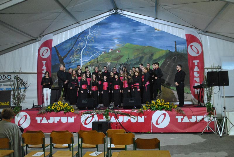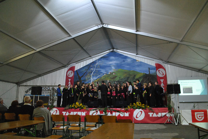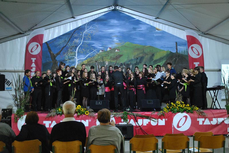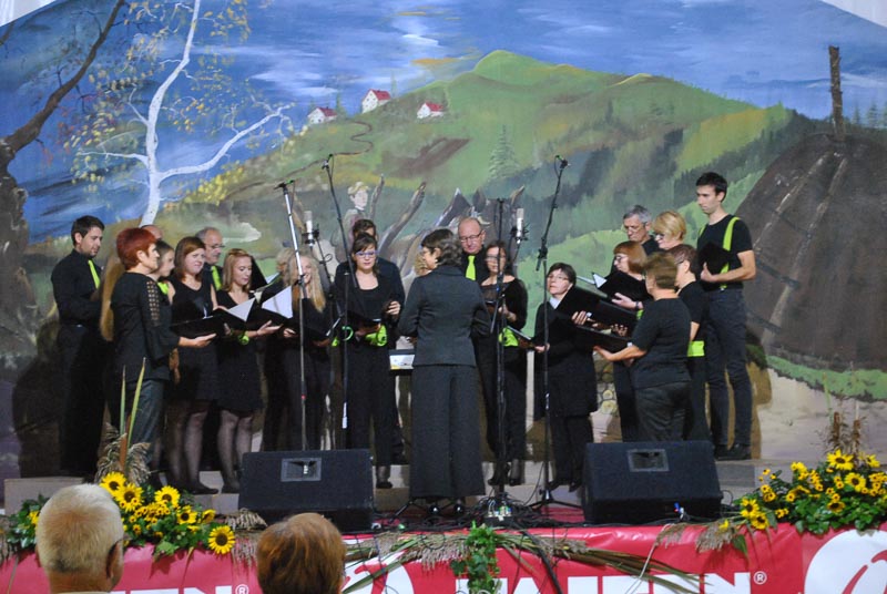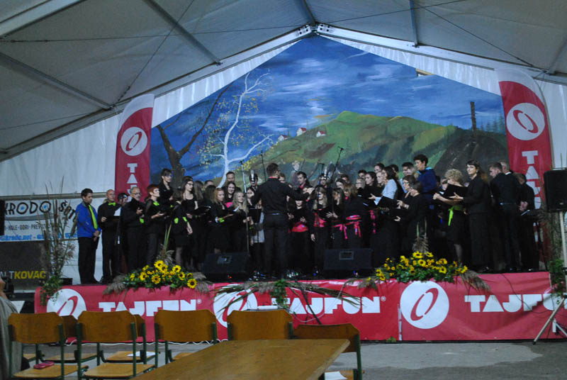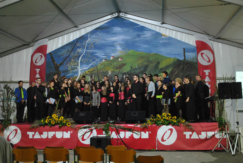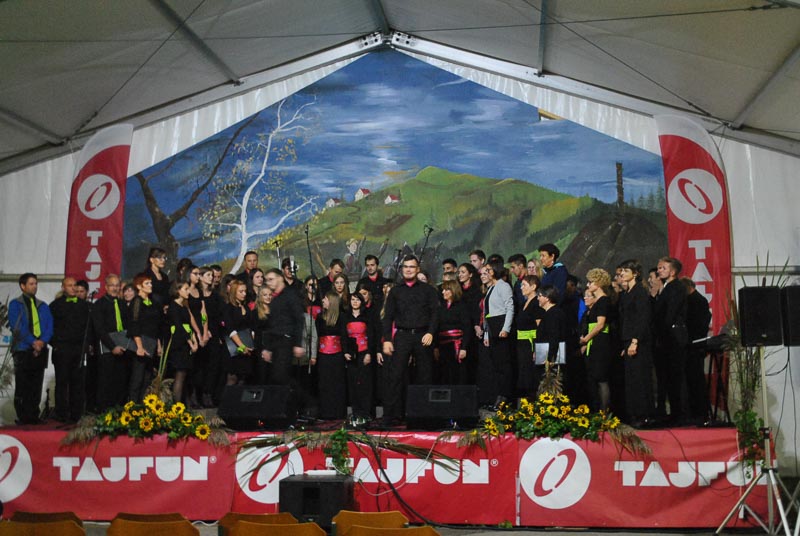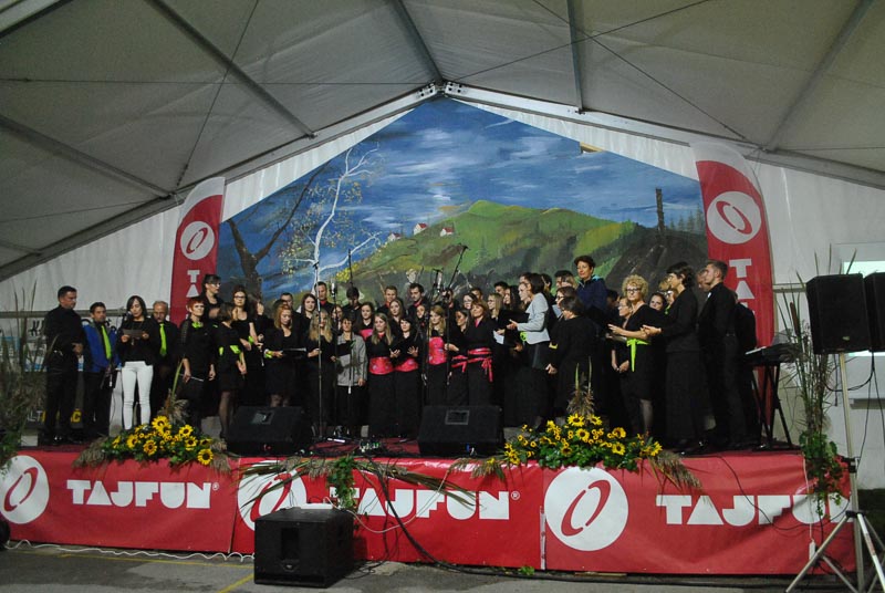 Vsak zbor se je predstavil s poljubnim programom, zapeli pa so po tri pesmi. Program je obogatilo še skupno petje vseh udeleženih zborov, ki jih je bilo blizu sto. Tako je številčen zbor vseh prisotnih šentviških pevk in pevcev zapel tri pesmi. Dve so zapeli pod taktirko dirigenta Matevža Pušnika, eno pa pod vodstvom Mateja Romiha. Na koncu prireditve se je v imenu domačega zbora vsem pevkam in pevcem Šentvidov, obiskovalcem prireditve in tistim, ki so pomagali pri organizaciji prireditve, zahvalil še predsednik MePZ Zarja Tomaž Tisel. Koncert, ki ga je povezovala domačinka in članica domačega zbora Mateja Kolar, je bil dobro obiskan, kar Zarjanom pomeni velika podpora pri njihovem delu in trudu. Naj še dodamo, da so si gostujoči zbori ogledali proizvodnjo podjetja Tajfun, zaradi slabega vremena pa je odpadel obisk gradu in sv. Križa. Kljub vsemu pa ni skvarilo popoldanskega druženja in dobrega razpoloženja vseh udeležencev zborov, kjer so že kovali načrte za naslednje leto, ki bo zopet v drugem kraju, kot veleva tradicija. Druženje se je nadaljevalo še dolgo v noč, kjer je obiskovalce navduševal ansambel Sauvignon. (Majda Rezec; foto: L. L.)