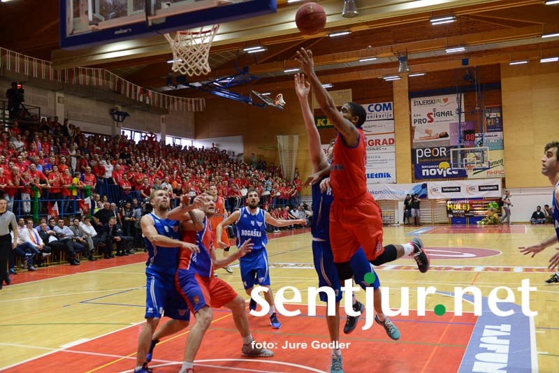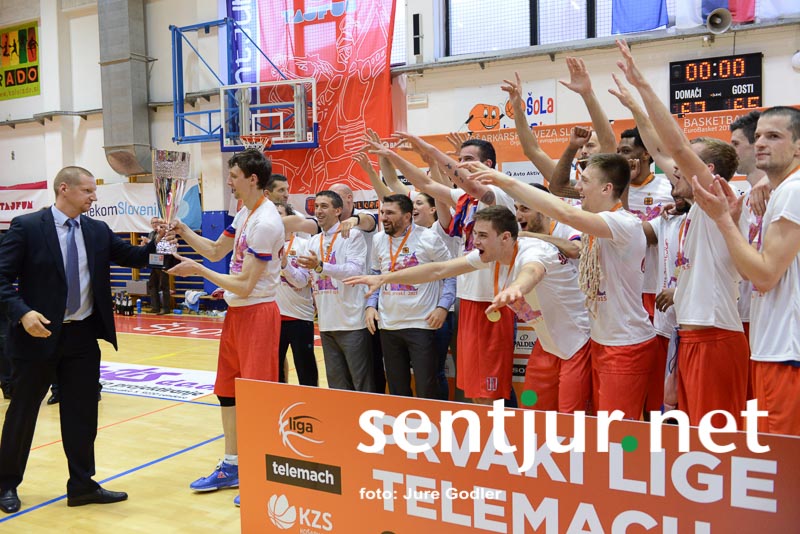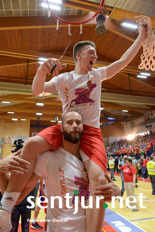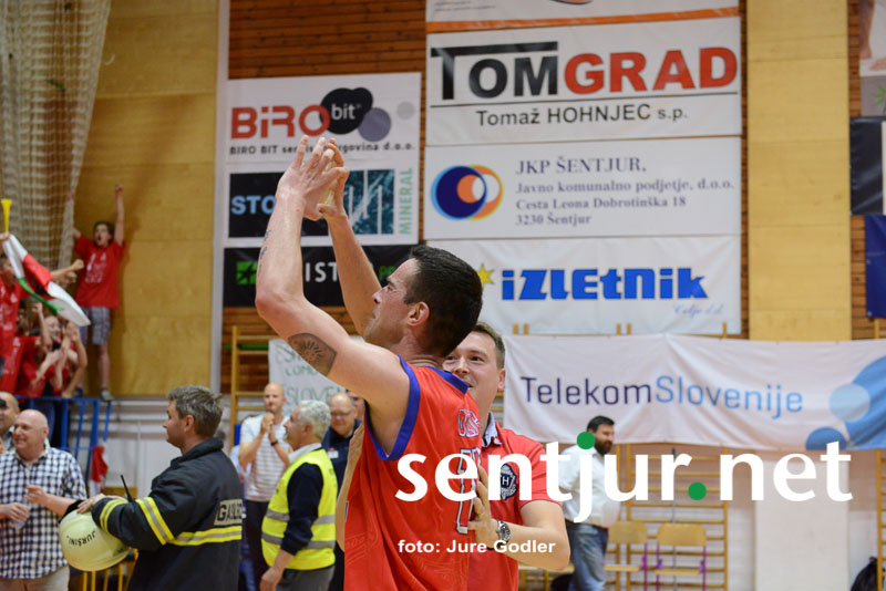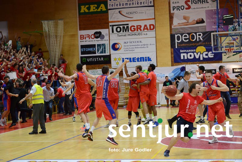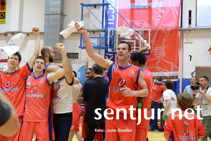 Tokrat je največ točk dosegel Ivan Držić 16, 12 jih je dodal še Dragiša Drobnjak, 9 pa Milan Sebič. Košarkarji Tajfuna so 3:1 v zmagah premagali ekipo KK Rogaška in prvič postali zmagovalci Lige Telemach. Seveda je slavje, ki je sledilo, le težko opisati z besedami. Veselje tako igralcev kot navijačev, odpiranje steklenic šampanjca, poljubljanje, čestitke z vseh strani. Zagotovo dogodek, ki je zaznamoval Šentjur do te točke, da so nekateri že kar zahtevali vsaj občinski praznik na današnji dan, če ne že slovenskega. Poleg zmagovalcev lige so razglasili tudi najkoristnejšega igralca (MVP) finala. To je zasluženo postal veteran in neutrudni borec pod košem Dragiša Drobnjak. Ta je vzel mikrofon v svoje roke nagovoril navijače: “Celotno sezono poslušam gospoda, ki je imel kot zvesti navijač po prav vsaki tekmi le dve vprašanji. Kdo je najboljši v Sloveniji in kdo igra najlepšo košarko,” navijači pa so mu v hipu odgovorili Šentjur, Šentjur … Evforija v športni dvorani OŠ Hruševec Šentjur pa je dosegla vrhunec, ko je kapetan Milan Sebič visoko dvignil pokal zmagovalca lige. Navdušenje pa se je preselilo tudi na Mestni trg pred občinsko stavbo, kjer so lahko številni navijači na velikem zaslonu spremljali direkten prenos tekme.