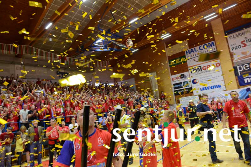 Šentjur, 28. 5. 2015 – Današnji dan bo za vedno zapisan z zlatimi črkami v anale Košarkarskega kluba Tajfun. V četrti tekmi finala so še tretjič strli odpor košarkarjev KK Rogaška in osvojili naslov prvakov Lige Telemach oziroma po domače državnih prvakov. Košarkarji in vodstvo kluba so napisali zgodbo, ki jo bodo pomnili še naši vnuki. Šentjurčani – državni prvaki v košarki …