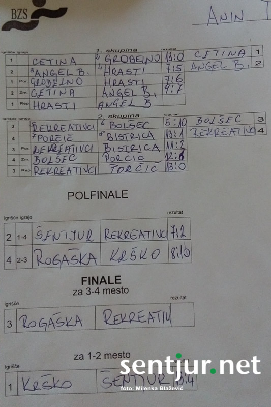 V uvodu je prisotne pozdravil predsednik BŠD Rogaška Crystal Jože Verk. »Letos sta se nam pridružili dve novi ekipi, BK Krško in BD Grobelno, ki je ustanovljeno pred nekaj meseci. Želim vam, da uživate v tekmovanju in druženju,« je povedal predsednik. V zelo zanimivem in napetem tekmovanju je malokdo pričakoval takšen razplet polfinala in finala. V finalu za 3-4 mesto sta igrali domači ekipi Rekreativci in Rogaška, za 1-2 mesto pa BK Krško in BK Šentjur. Prvo mesto je osvojila ekipa BK Krško, drugo Šentjur, tretje Rogaška in četrto Rekreativci – BŠD Rogaška. Za Šentjur so igrali Katica Košir, Silvo Čoklc, Zlatko Lajh in Rudi Poš. (Milenka Blažević, foto: Milenka Blažević)