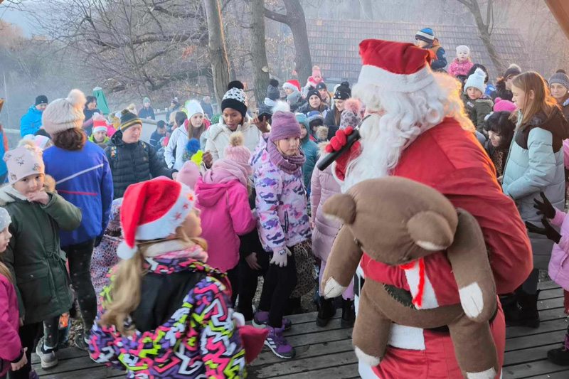 Otroci pa so po poti prejeli lučke za osvetlitev poti in hitro prispeli na cilj. Tam so se lahko pogreli ob odprtem ognju, se okrepčali z mafini in s toplim čajem ter prisluhnili pravljici. Posebno doživetje pa je zagotovo bilo, ko je Božiček z medvedkom v roki prav počasi prikorakal po stopnicah stolpa. Nagovoril jih je in po petju pesmi vse obdaril z darili. Nato je spet odkorakal nazaj proti vrhu stolpa. (Tjaša Ferlež)