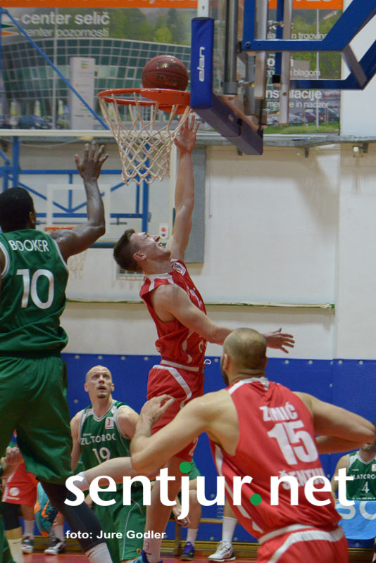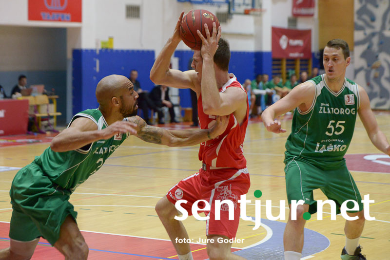 Šentjur, 4. 5. 2016 – Aktualni košarkarski prvaki – ekipa KK Tajfuna, je tokrat gostila v dvorani Hruševec sosednjo ekipo – ekipo Zlatorog iz Laškega. Kljub bližini obeh košarkarskih krajev si je tekmo ogledala le peščica navijačic iz Laškega. Naši košarkarji, ki so uvodne minute začeli v dokaj nenavadni postavi – brez organizaotrja igre, so si takoj na začetku tekme pridelali zaostanek 8 točk. Naši so, razen dveh zabijanj Terella Parksa, začeli zadržano in neodločno. K slabi in nepovezani igri pa je svoje prispevala tudi sodniška trojka. Trener Dejan Mihevc se je precej časa trudil poiskati peterko, ki bi med sabo funkcionirala in bi bila tudi razpoložena. To pa mu ni in ni uspevalo. Tik pred polčasom je prednost gostov narasla na največjo – 14 točk, pri vmesnem rezultatu 44:30.