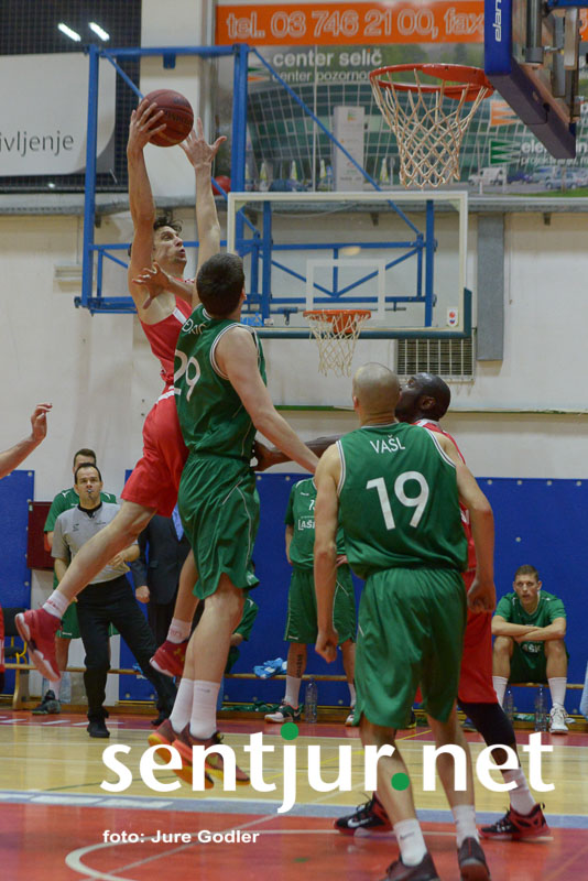 Mučenje žoge in igranje z živci navijačev se je nadaljevalo skoraj do konca tretje četrtine, kjer je Laščanom začel mešati štrene Domen Bratož, ki se v prvem polčasu ni ravno naigral. Z nekaj bliskovitimi prodori, ki so se končali ali s košem ali osebno napako nad njim, je prednost gostov do konca četrtine omilil. V začetku zadnje četrtine so Pipanovi varovanci ponovno pobegnili na varno prednost, a so naši pokazali zobe in se 3 minute pred koncem tekme približali le na 3 točke zaostanka 69-66. Za preobrat pa jim je zmanjkalo moči. Tekma se je končala z rezultatom 67:74. Največ točk je dosegel Terell Parks – 19, Sandi Čebular pa jih je prispeval 14. Uradni predstavnik Robi Ribežl je v poročilu zahteval analizo sojenja, a je zaradi neupoštevanja protokola prošnjo uradni komisar zavrnil. Ob pristranskem sojenju je počilo tudi vedno mirnim Šentjurskim vitezom. Na igrišče je poletela bobnarska palica, na sodnike pa se je vsul tudi plaz žalitev. Za prvi prekršek so klub olajšali za 250 evrov, za drugi pa 100 evrov. (Jure Godler)