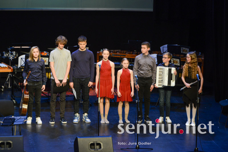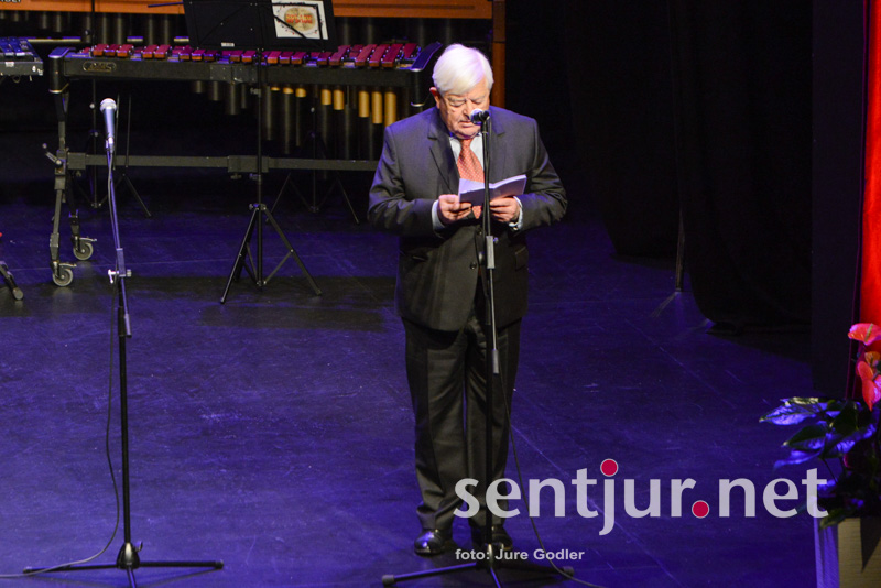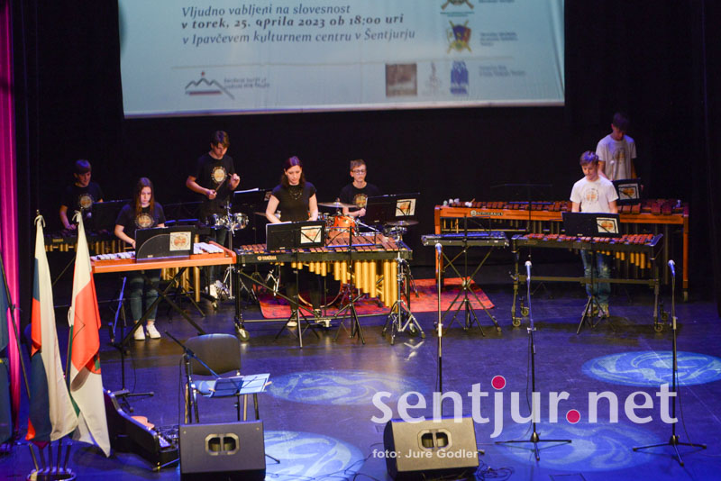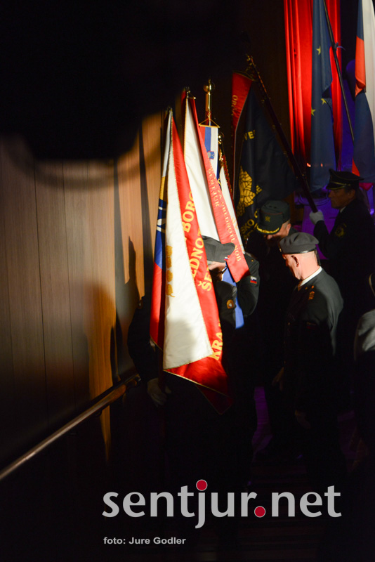 Prireditev so ob zvokih koračnice otvorili praporščaki, ki so se postavili na rob dvorane. Prapore so prispevali Združenje borcev za vrednote NOB Šentjur, Območno združenje slovenskih častnikov Šentjur, Območno združenje veteranov vojne za Slovenjo Šentjur, Policijsko veteransko društvo Sever – odbor Šentjur in Dobje – ter Klub brigadirjev mladinske delovne brigade Miloša Zidanška Šentjur. Kot je prav in se spodobi za državni praznik, so slovensko himno zapeli pevci Moškega pevskega zbora skladateljev Ipavcev Šentjur, ki jih vodi Valentina Černe.