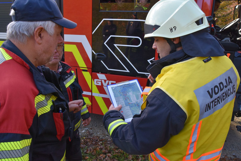 Prav tako pa so gasilci med seboj preverili tudi sistem zvez – komunikacija med vsemi udeleženci. Vajo sta si ogledala tudi predsednik in poveljnik GZ Šentjur Aleš Guzej in Uroš Siter. Opazovalci in ocenjevalci so vajo ocenili za zelo dobro opravljeno. (Tone Kukovič, Tjaša Ferlež, Foto: Tone Kukovič)