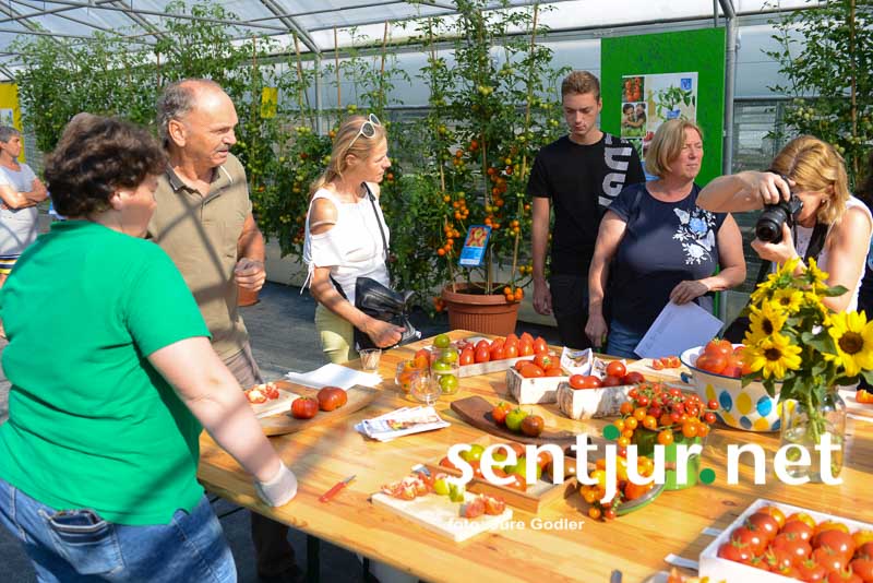 Šentjur, 18. 8. 2018 – Mineva že deseto leto zapovrsti, odkar v Vrtnariji Valner pripravljajo dneve odprtih vrat – Dneve zelenjave. Obiskovalci lahko ob obisku naše največje vrtnarije poskusijo različne sorte paradižnikov, paprik in tudi čilijev. Seveda je konec poletja že zdavnaj zamujen čas, da bi si pridelke zasadili, zato si obiskovalci tiste, ki so jim najbolj všeč, zapišejo in iste kupijo na začetku leta, ko se začne saditi vrtne pridelke. Tokrat so svojim obiskovalcem postregli kar s 33 različnimi sortami paradnižnikov, devetimi vrstami čilijev in 23 vrstami sort paprik. Seveda pa lahko obiskovalci za nasvete tudi povprašajo “hišne” strokovnjake Ireno Vizjak, predstavnico podjetja Volmary, Mišo Pušenjak iz Kmetijskega zavoda Maribor za svetovanje o vrtnarstvu, ki je odgovarjala na vprašanja o zelenjavi, Slavka Zgonca, specialista za bolezni in škodljivce, Draga Jančiča, ki je strokovnjak za sadje, in dr. Janka Rodeta, ki je poleg svojega bogatega znanja o zdravilnih raslinah ponujal tudi zdravilne ekstrate in esence raslin. Strokovnjaki so odgovarjali na različna vprašanja in okoli njih se je ponavadi kar hitro naredila skupinica obiskovalcev, ki so poslušali njihove odgovore in nasvete, kako vzgajati rastline.