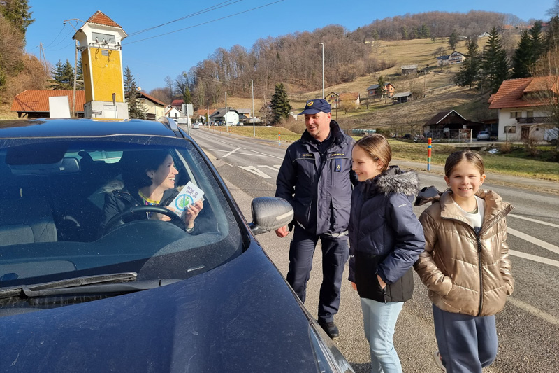 Dobje, 7. 2. 2024 – V sredo je v Dobju ob glavni regionalni cesti potekala preventivna akcija »Brez alkohola na cestah občine Dobje«, ki sta jo skupaj izvedli Osnovna šola Dobje v okviru projekta Zdrava šola in Policijska postaja Šentjur. Učenci Osnovne šole Dobje so ob pomoči policistov Policijske postaje Šentjur (PP Šentjur) pozivali voznike, naj nikoli ne sedejo za volan pod vplivom alkohola. Vsak ustavljeni voznik je prejel alkotester in zgibanko »Alkohol? Ne, hvala!« Zgibanke so predhodno pripravili učenci v okviru Razširjenega programa. Na zgibanki so slikovna opozorila, ki voznike pozivajo: »Pozor! Ne vozi, ko piješ« in »Alkohol ne sodi za volan«.