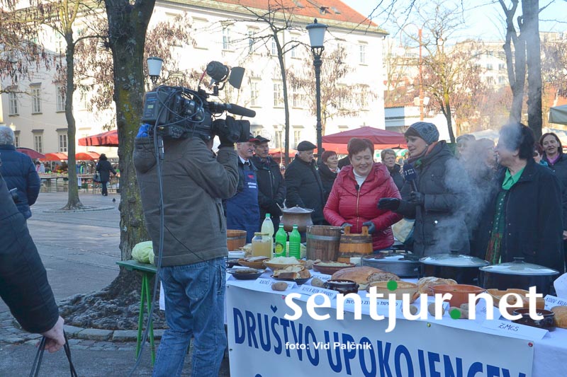 Ljubljana, 28. 11. 2015 – Oddaja Dobro jutro Televizije Slovenije se vsak petek odpravi na ljubljansko tržnico, kjer s povabljenimi društvi predstavlja različna živila, dobrote in običaje. Na povabilo so se odzvali tudi upokojenci Društva upokojencev Gorica pri Slivnici in se tako zadnji petek v novembru v velikem številu odpravili na osredno ljubljansko tržnico. V treh vklopih v živo so predstavljali jedi iz zelja in repe ter postopke priprave jedi, v katerih nastopata omenjeni sestavini. O njiju sta marsikatero modrost navrgli tudi prehranska inženirka Marija Merljak ter voditeljica oddaje Katja Tratnik. Ni pa ostalo samo pri kulinariki, saj so vseskozi dobro vzdušje z ljudskimi napevi držali Ljudski pevci s Prevorja in harmonikaš ter tako vzbudili pozornost mimoidočih, sploh starejših meščanov. KS Slivnica pri Celju je predstavil Vid Palčnik, KS Prevorje pa tudi s kratko poezijo Majda Rezec, spregovoril je kuhar Drago Leskovšek, predsednica društva upokojencev Gorica pri Slivnici Zdenka Bevc Škof je predstavila aktivnosti in delo društva, svojo pesniško zbirko pa je predstavila tudi mag. Marjana Artiček. Ob koncu snemanja so si upokojenci, televizijci in mimoidoči privoščili pripravljene dobrote in tako zaključili novo izkušnjo. Posnetek oddaje si lahko ogledate na spletni videoteki RTV 4D. (Vid Palčnik)