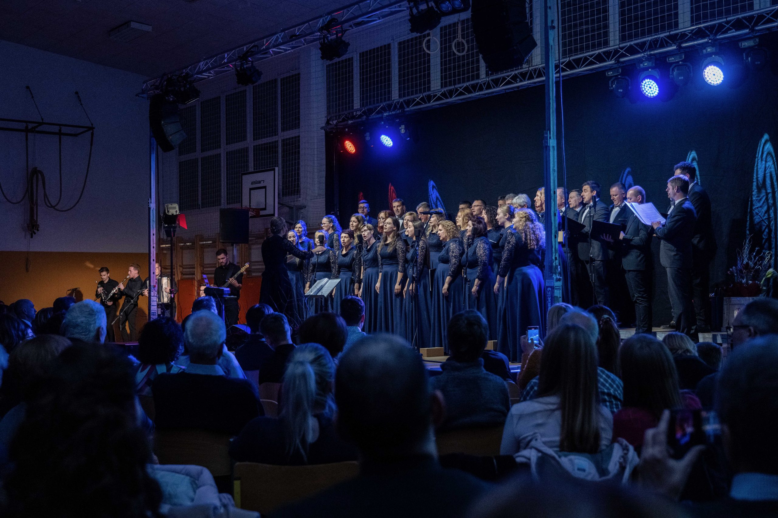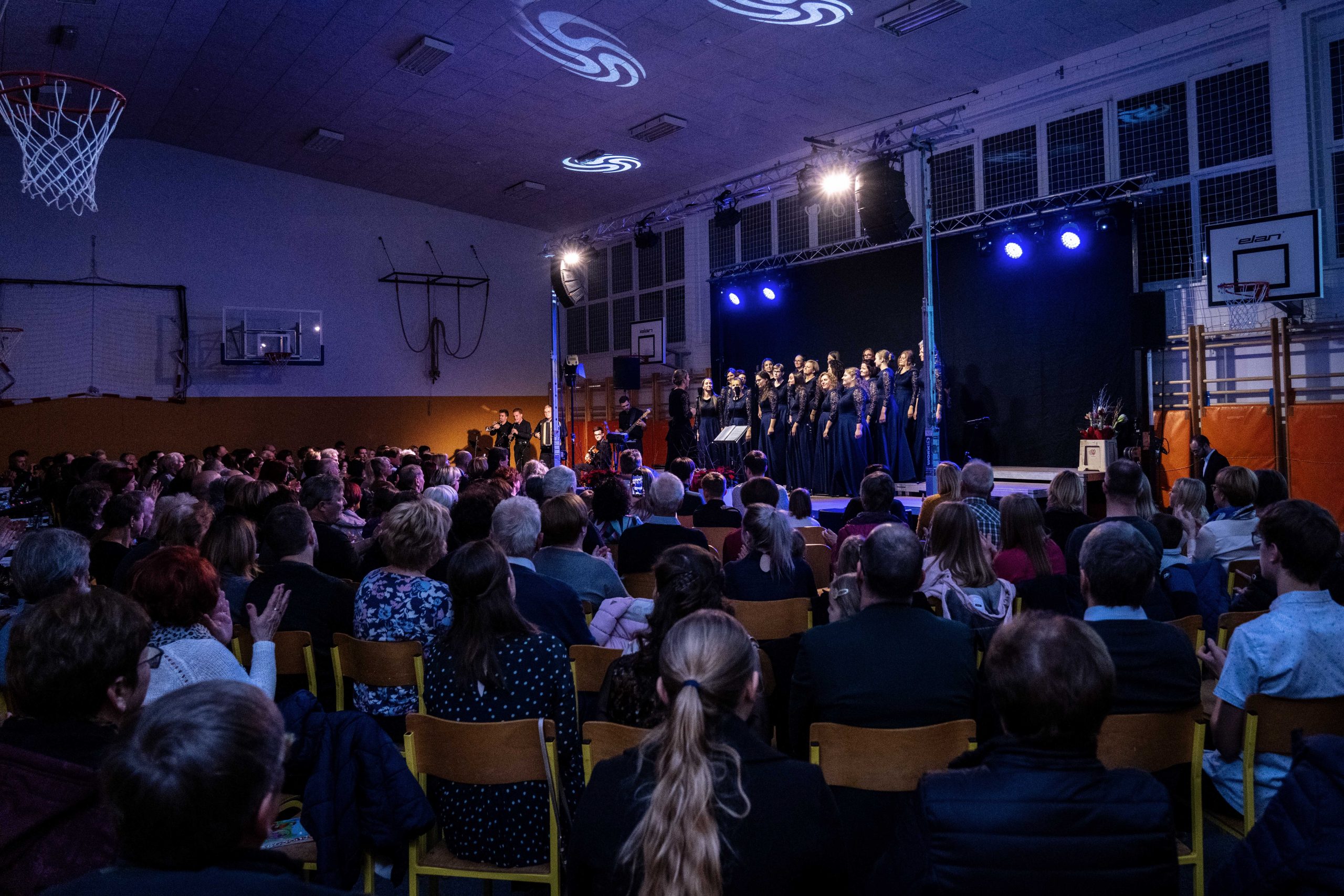 Dramlje, 29. november 2025 – November so v Dramljah zaključili z dvojnim slavjem; visoki okrogli obletnici sta s koncertom praznovala tako ženski kot moški pevski zbor, ki nosita ime kraja. Domača krajevna skupnost pa je glasbeni dogodek združila tudi s podelitvijo svojih priznanj.