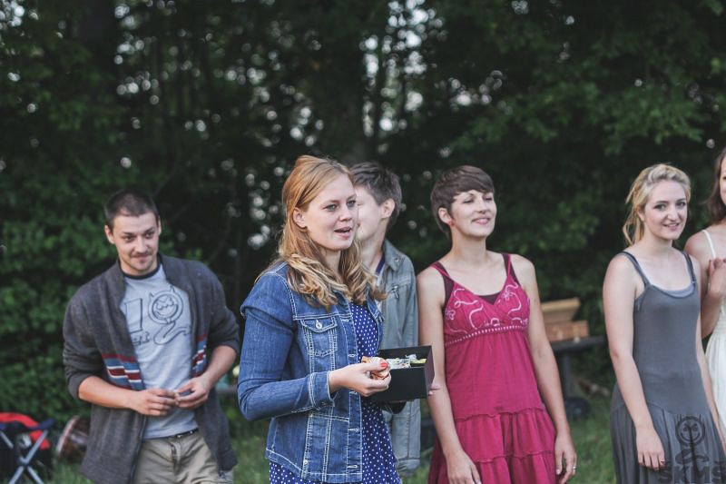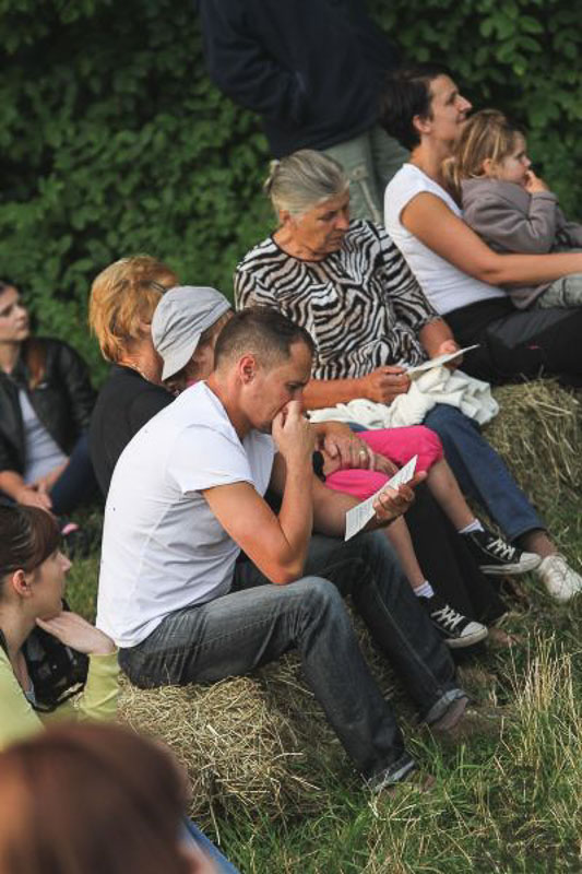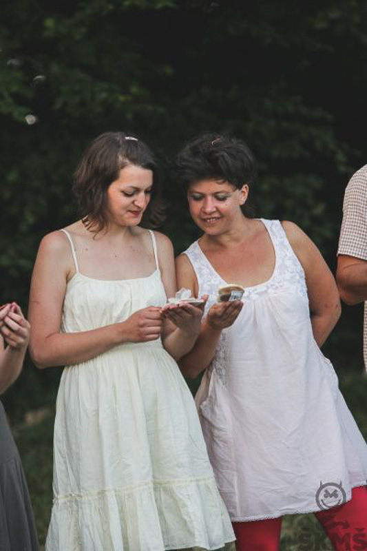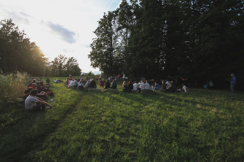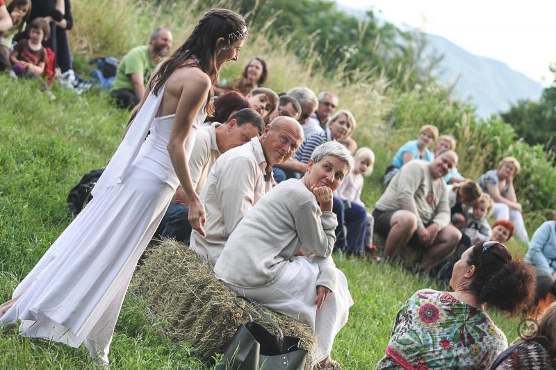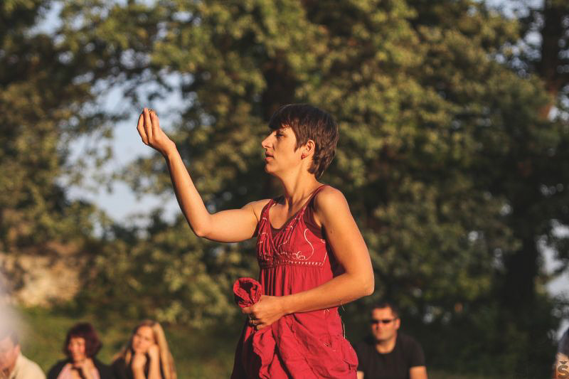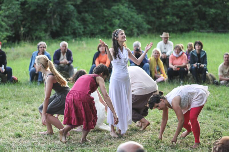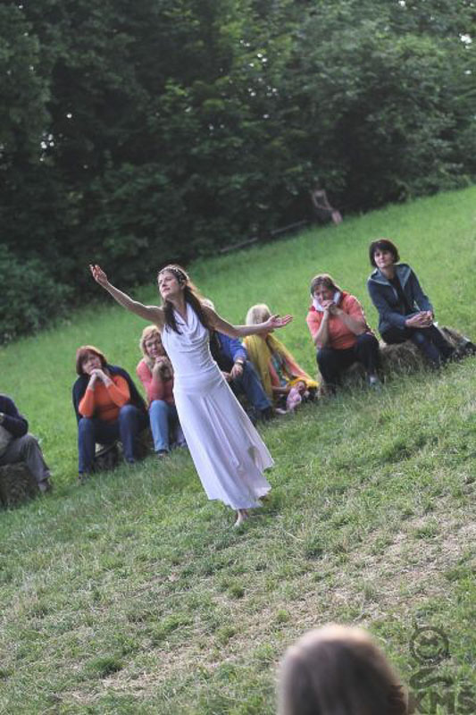 Rifnik, 21. 6. 2014 – Poletni solsticij je dan, ki v sebi nosi največ svetlobe in toplote. Na Rifniku so nastopili člani Skupine za ustvarjalni gib z gosti in na izviren način predstavili knjižico in projekt Drevesne zgodbe. Pred prireditvijo so bile obiskovalcem na voljo naravne dobrote pridelave lokalnih pridelovalcev, dogodek je spremljala tudi fotografska razstava Daniela Sivinski “Pogled na ubijanje podnebja”. Katarina Jenšterle je bila avtorica idejne zasnove in koreografije, pripovedovali in plesali so poleg nje Zala Koleša, Lučka Palir Mavrič, Bogdan Rahten, Tjaša Šoster, Veronika Gradišek in Nika Gradišek. Za glasbo so poskrbeli Ines Ljubej (kahon), Rok Vodeb (oprekelj), Mitja Kamplet (vokal) in Rok Lajlar (kitara).
