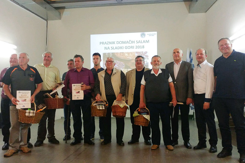 Sladka Gora, 28.04. 2018 – Na ocenjevanju salam, ki ga že vrsto let organizira Turistično društvo Skriti biser Sladka Gora, so letos ocenili 46 salam, od tega jih je 11 prejelo zlato diplomo, vse ostale pa srebrno. Najvišjo oceno je prejela salama Antona Gajška iz Loke pri Žusmu.