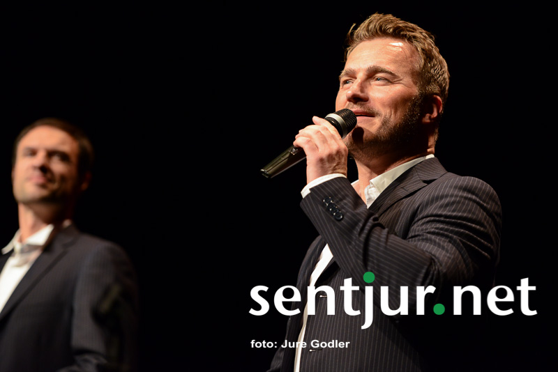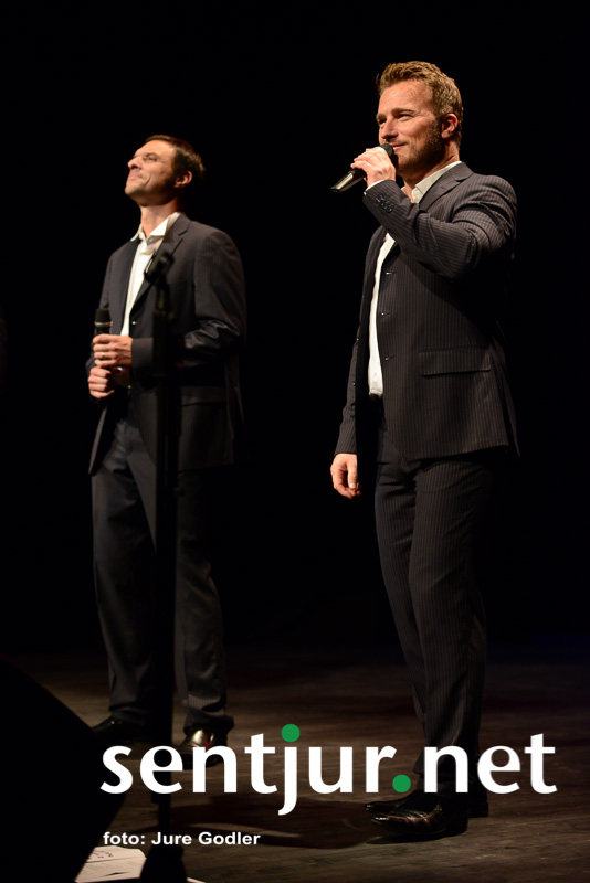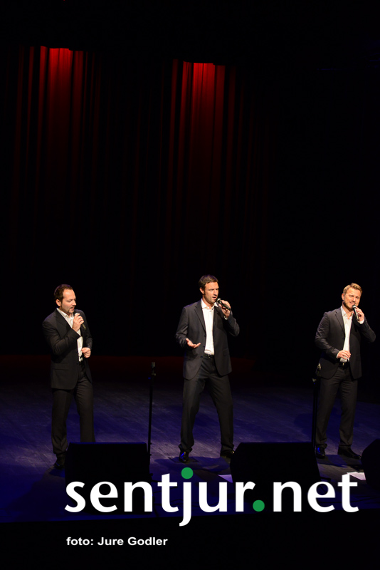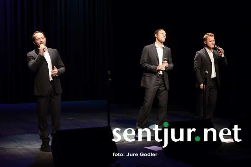 Šentjur, 16. 11. 2014 – Trio Eroika še vedno velja za eno najpopularnejših vokalnih skupin v Sloveniji, čeprav pevci zaradi številnih obveznosti nastopajo precej manj kot včasih. Tenoristi Aljaž Farasin, Matjaž Robavs in Metod Žunec so pričarali v polnem IKC pravo vzdušje in opravičili sloves Eroike. Šentjurski poslušalci so slišali vse največje uspešnice tega tria: Dan ljubezni, Namesto koga roža cveti, Ko mene več ne bo, Julija, Nessum dorma, Always on my mind, španska prepesnitev uspešnice “Ti si mi u krvi” in druge. Zanimivo je tudi dejstvo, da je novo dvorano IKC preizkusila tudi “nešentjurska” agencija RTA, katere direktorica Katarina Karlovšek je “zakrivila” tokratni nastop. Ob prijetnem počutju je obljubila, da se bodo v Šentjur še vračali tudi z drugimi nastopajočimi. Eroika je poslušalce skoraj dvournega koncerta tako navdušila, da so si za konec prislužili kar tri ponovitve. Trojica pevcev se je celo pri izvedbi zadnje pesmi sprehodila kar med občinstvom. (Jure Godler)