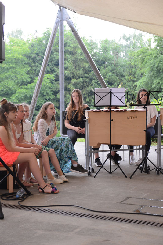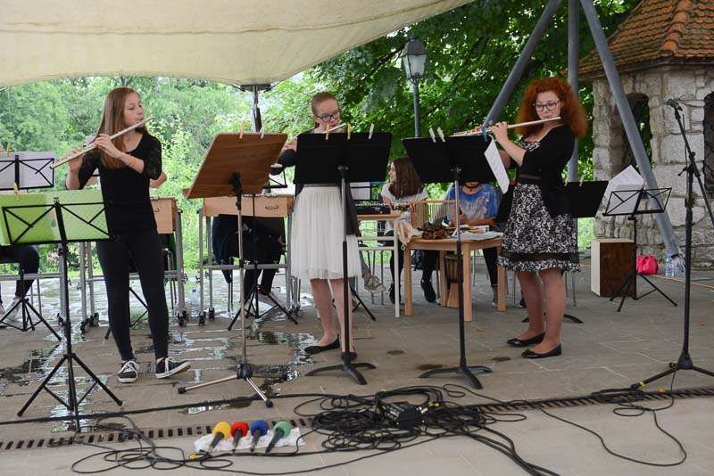 Trio Evterpa pa sestavljajo tri mlade in izvrstne flavtistke Julija Kalan, Iza Pia Peperko in Janja Šolinc. Flavtistke se v tej zasedbi velikokrat udeležujejo tekmovanj, kjer dosegajo izjemne rezultate. Lep koncert obeh skupin je sicer zmotil naliv, a mladi glasbeniki se niso dali motiti in so svoj program odlično izpeljali. (Jure Godler)