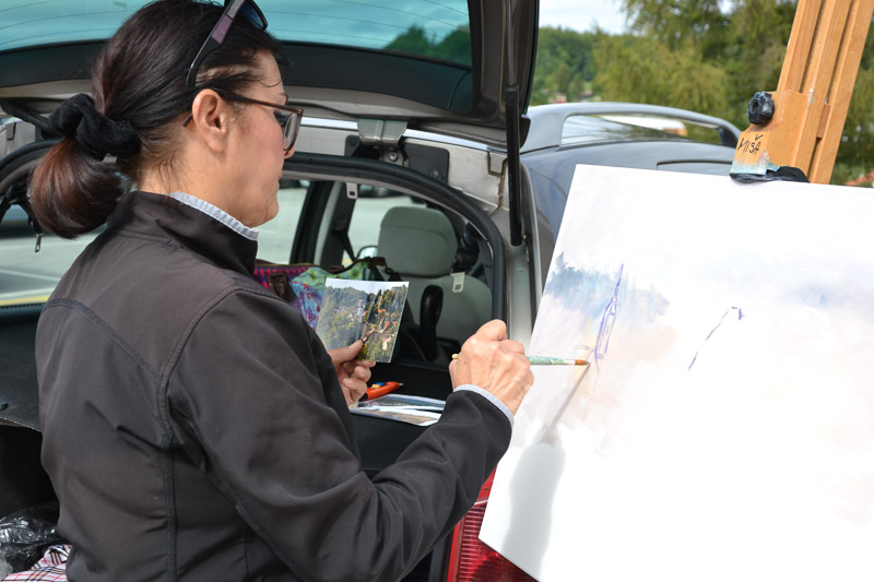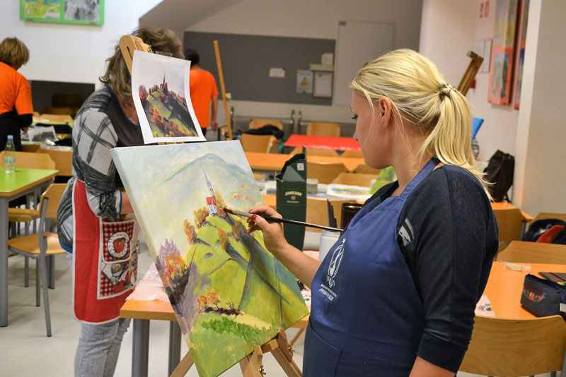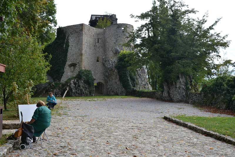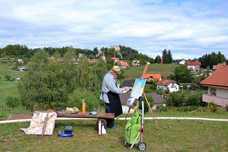 Planina pri Sevnici, 3. 9. 2017 – Ljubiteljski likovniki iz vse celjske regije so se minulo nedeljo, 3. septembra, dobili na tradicionalnem ex temporu, ki ga je šentjurska izpostava Javnega sklada RS za kulturne dejavnosti tokrat organizirala na Planini pri Sevnici, v eni od največjih krajevnih skupnosti v občini Šentjur. Malce muhasto vreme slikarjem ni preprečilo, da bi se razporedili po kraju in na svoja platna ujeli različne motive, ki jih ponuja čudovita Planina. Največ se jih je lotilo slikanja mogočnih in impresivnih ruševin gradu, zaščitnega znaka te krajevne skupnosti.