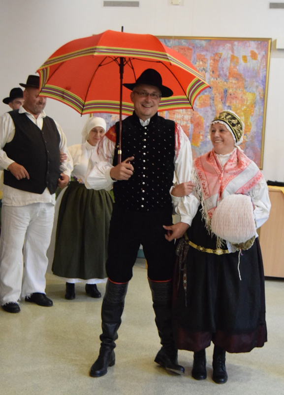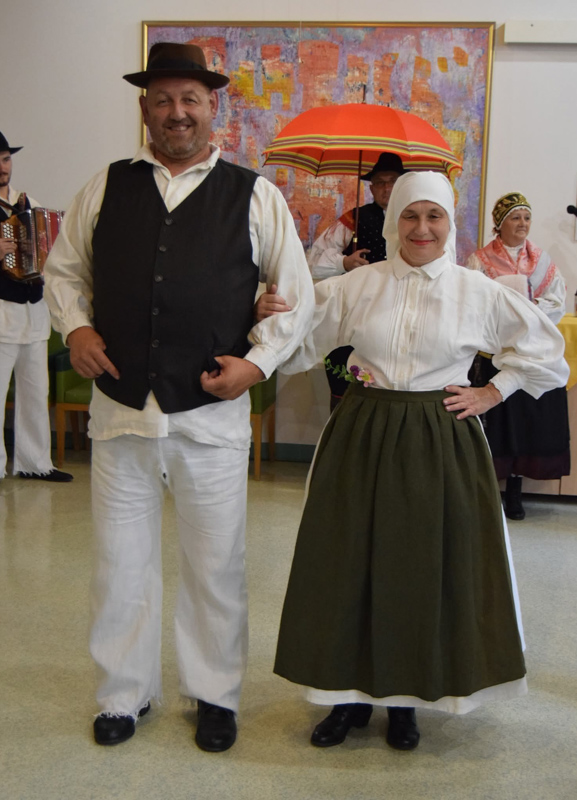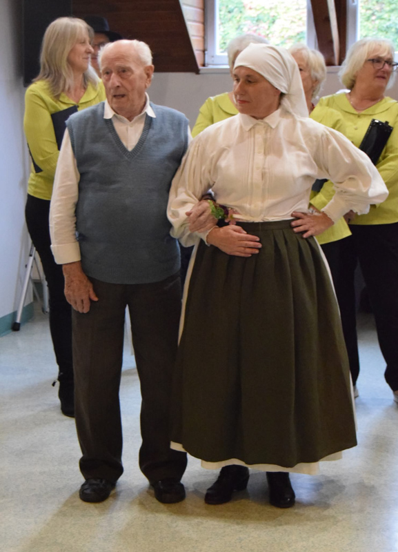 Z nami so nastopili člani Športno-kulturnega društva Predgrad s svojo sekcijo ljudskih pevcev, ki so zapeli nekaj ljudskih pesmi. Stanovalcem doma sta se nato glasbeno predstavila naša mlada muzikanta Žiga in Aljaž in jim zaigrala nekaj valčkov, polk ter ljudskih viž. Prireditev smo zaključili skupaj z našimi gosti in zapeli nekaj starih ljudskih pesmi. Za zaključek prireditve pa smo na ples povabili še stanovalce doma. Nekateri so se z veseljem odzvali našemu povabilu in zaplesali. Z veseljem smo sprejeli njihovo povabilo in se bomo še vračali v njihov dom, saj so nas ves čas druženja spremljali s smehom na obrazu. Vsekakor se bomo tudi v prihodnje trudili, da se običaji in plesi naših prednikov ne bodo utonili v pozabo. (Dragica Gobec)