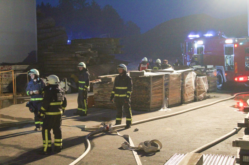 Povod za požar je bila okvara na viličarju, s katerega je ogenj preskočil na žagovino pomešano z lubjem. Požar se je razširil na paket zloženih desk. V tem prostoru se izvaja klasificiranje desk, ki ga opravljajo trije delavci. Svoje delo pa so med tem opravljali še trije delavci na zgornjem skladišču izven objekta. Požar se širi znotraj skladišča. Obstajala je nevarnost, da se požar še razširi v druga skladišča, s čimer bi bil ogrožen celoten kompleks podjetja. Skladišče je pritlično, zato preskok v višja nadstropja ni možen. V sami stavbi je ujetih nekaj ljudi, ki se niso uspeli pravočasno rešiti.