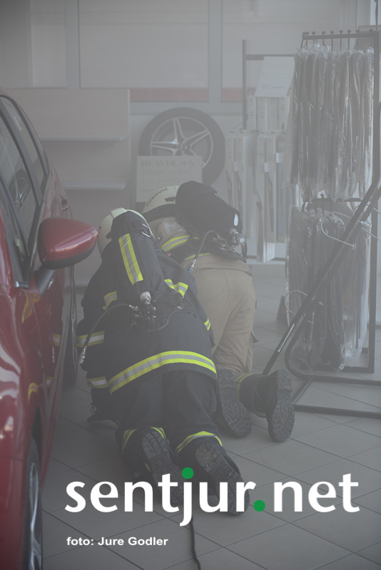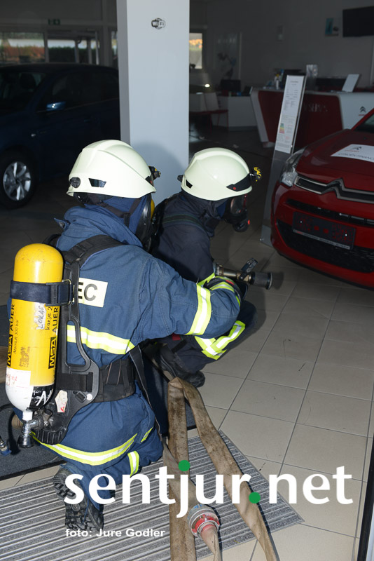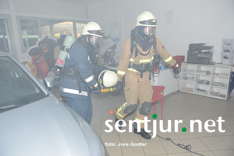 Stopče, 29. 10. 2016 – Prostovoljno gasilsko društvo iz Šentjurja je organiziralo gasilsko vajo na objektu Avtohiše Mlakar v Stopčah. Ob drugi uri popoldan se je oglasil pozivnik Šentjurskim gasilcem pa tudi pozivniki na PGD Šentvid pri Grobelnem in PGD Slivnica pri Celju. Zagorela naj bi lakirnica na objektu, požar pa se je že razširil na prodajni salon. Prvi je na mesto požara prišel poveljnik PGD Šentjur Danilo Matoš, ki je koordiniral prihode gasilskih vozil in razdelil naloge gasilcem.