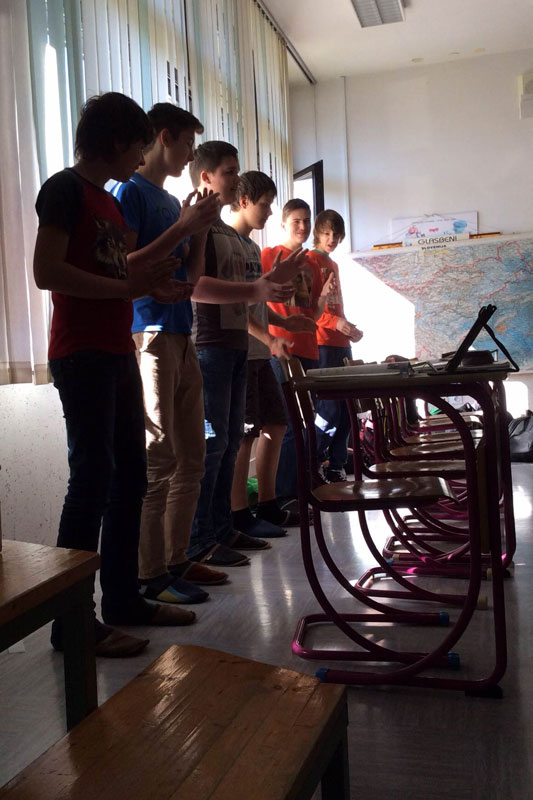 Gospe svetovalki sta se v razredu pridružila še gospod ravnatelj Robert Gajšek in učiteljica Katja Gajšek.Ura se je pričela, kot je treba. Začeli smo s petjem pesmi Every breath you take, da smo si ogreli naše glasove in telesa. Sošolka Patricija nam je predstavila romantičnega skladatelja G. Rossinija, Zala pa nam je povedala vsebino opere Viljem Tell. Nadaljevali smo z igranjem na programu Piano, ter zaigrali odlomek iz uverture v opero Viljem Tell. Igrali smo melodijo in oblikovali tudi spremljave. To smo ob koncu ure zaigrali tudi na pravih glasbilih (glasbenih ploščicah), učiteljica pa nas je usmerjala. Ga. Inge nas je pohvalila in nam dala domačo nalogo. Na iPadih moramo poiskati aplikacije za ustvarjanje glasbe in si še sami izmisliti spremljavo in besedilo na melodijo uverture. Obiskovalka Breznikova je bila zelo zadovoljna s to šolsko uro, se nam zahvalila in zaželela še ogromno takšnih ur. (Zala Fidler, 8. b OŠ Hruševec Šentjur)
