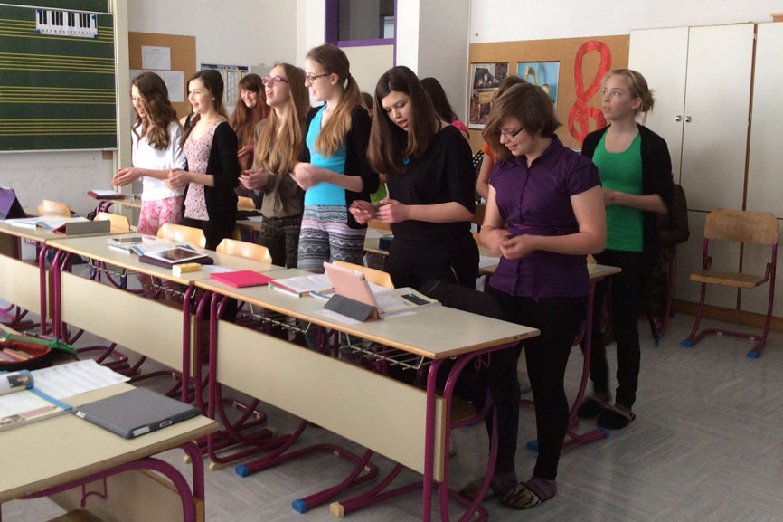 Šentjur, 20. 3. 2014 – Na OŠ Hruševec Šentjur je prišla dr. Inge Breznik z ministrstva za šolstvo. Spremljala je eno iz med naših šolskih ur glasbe. Prišla je z namenom, da vidi, kako potekajo ure v projektu Inovativna pedagogika 1:1. Na to se nismo kaj posebej pripravljali, saj smo že ker vešči pri delu z iPadi. En teden prej smo si prenesli nanje dve glasbeni aplikaciji (Piano, Music sparkle). Učiteljica glasbene umetnosti Blanka Pasarič nam je pripravila vse, kar je bilo potrebno. Učne liste, inštrumente …