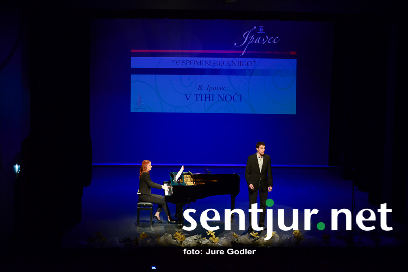 Šentjur, 3. 11. 2015 – Zaključni koncert Ipavčevih kulturnih dnevov (IKD) je minil v tradicionalnem prepevanju samospevov Benjamina in Josipa Ipavca. V Ipavčevem kulturnem centru se je zbralo okoli 180 obiskovalcev, ki so poslušali pevke in pevce slovenskih glasbenih šol ob izvajanju skladb naših znanih rojakov. Nastopile so Glasbena šola Kranj, Glasbena šola Nazarje, Glasbena šola Litija – Šmartno, Glasbena šola Postojna, Konservatorij za glasbo in balet Ljubljana, Akademija za glasbo in nenazadnje organizatorji dogodka – Glasbena šola skladateljev Ipavcev Šentjur. Mladim glasbenikom pa ta koncert predstavlja priložnost za večjo prepoznavnost.  Šentjurska glasbena šola pa že vrsto let sodeluje pri ohranjanju zapuščine skladateljev Ipavcev. “Ipavci so s svojim delovanjem in skadateljskim opusom krepili slovensko zavest in narodno pripadnost,” je uvodoma povedala ravnateljica šole Simona Zdolšek. Koncert, ki so mu organizatorji nadeli ime “V spominsko knjigo”, je zadnji v sklopu IKD. Od domačinov so se predstavili Jernej Krizman, Karin Šket in Ana Golnar. Vsi mladi pevci pa se učijo pevskih veščin pri profesorju solopetja Boštjanu Korošcu, ki pa je tudi prijel za organizacijsko palico tega koncerta. (Jure Godler)