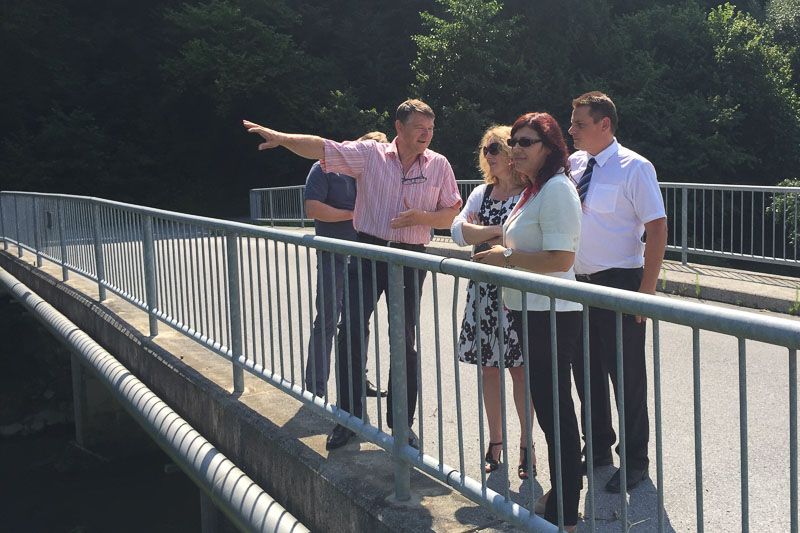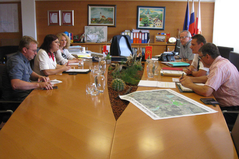 Šentjur, 4. 7. 2015 – Občina Šentjur v zadnjem obdobju s pomočjo državnih sredstev iz vodnega sklada izvaja obsežna dela za izboljšanje poplavne varnosti in hkrati načrtuje nadaljnje faze protipoplavnih ukrepov. Z napredovanjem del in načrti občine je župan mag. Marko Diaci na delovnem srečanju seznanil visoka predstavnika Ministrstva za okolje in prostor, državno sekretarko Tanjo Bogataj in generalnega direktorja Direktorata za vode in investicije Leona Behina, sestanka pa se je udeležila tudi Alenka Zupančič iz celjske izpostave Agencije za okolje in prostor.