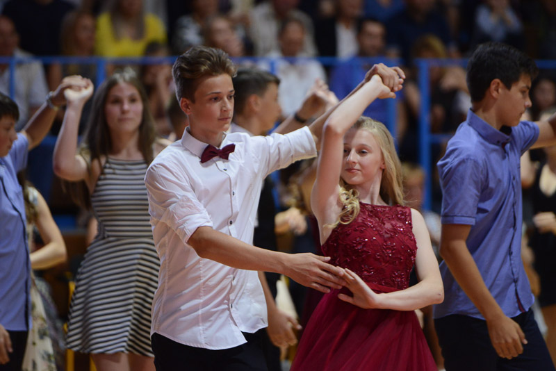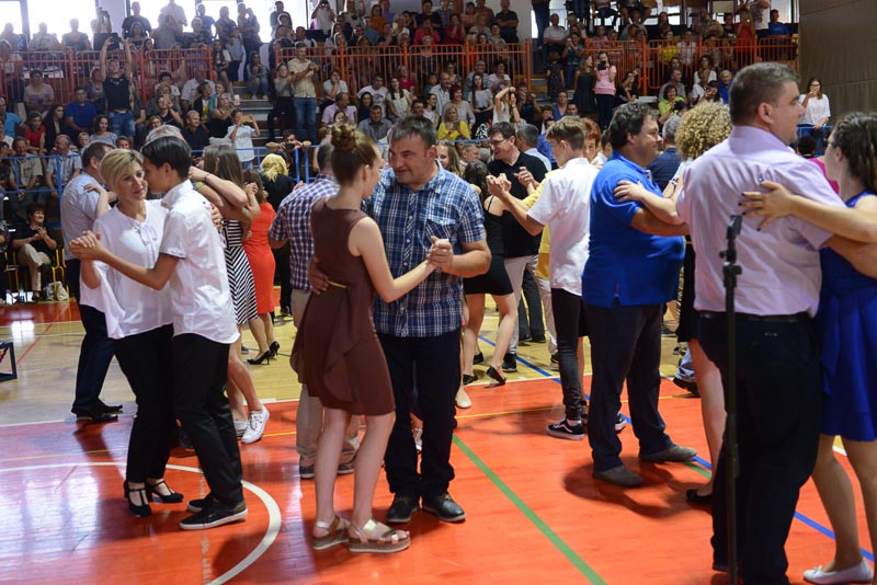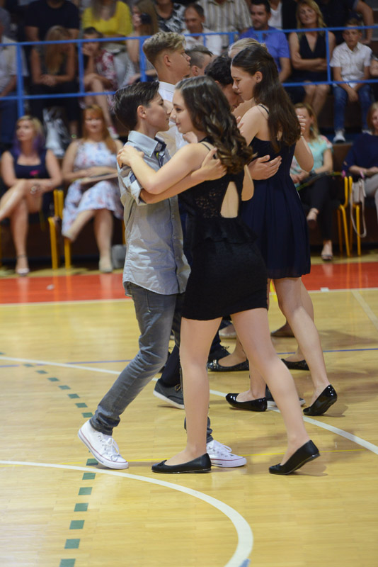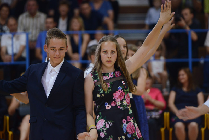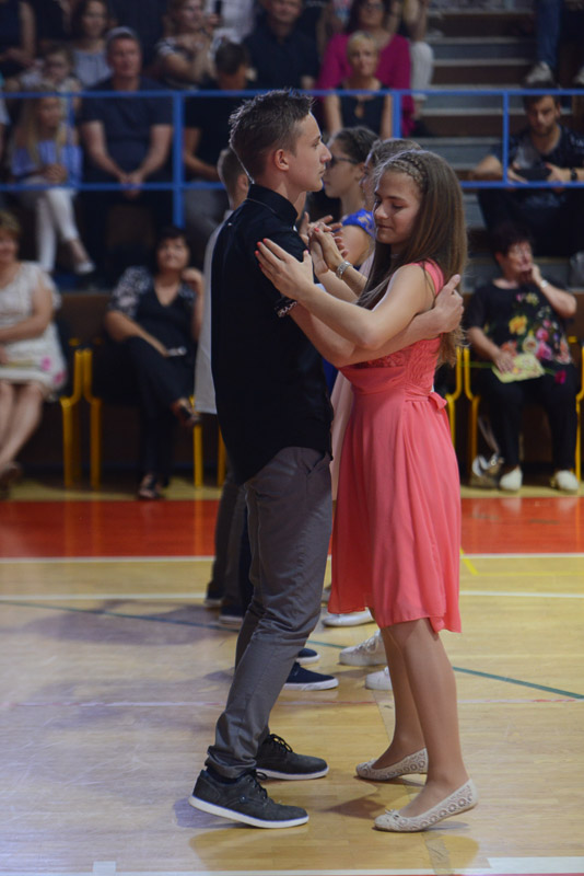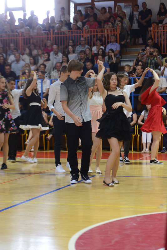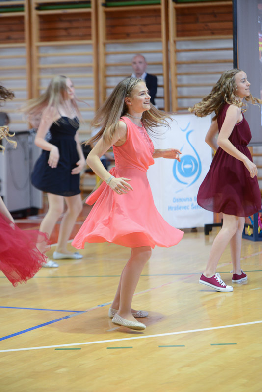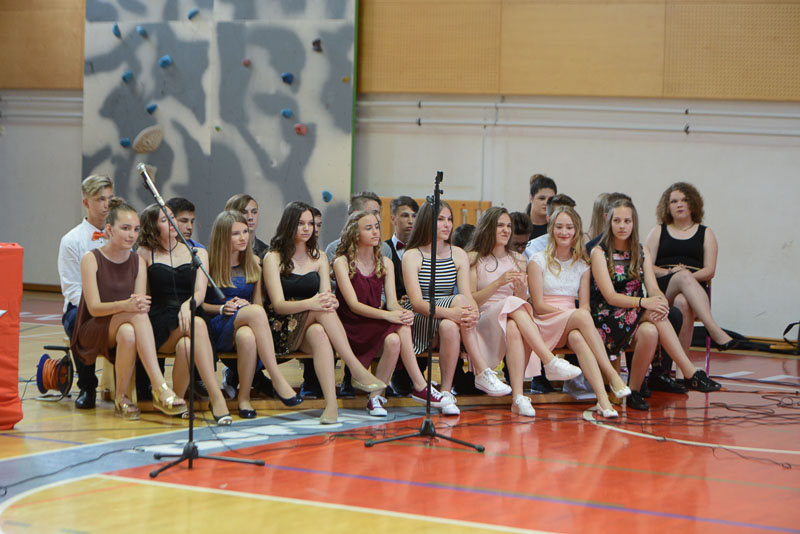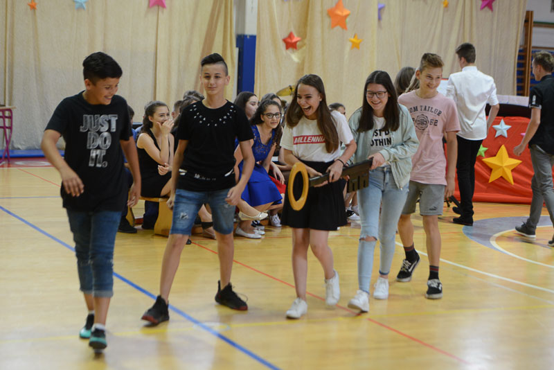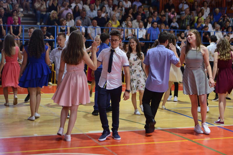 Šentjur, 15. 6. 2018 – Osnovnošolsko izobraževanje so devetošolci OŠ Hruševec Šentjur zaključili z valeto. Preden pa so se zavrteli s sošolci, so izvedli program, ki so ga pripravili sami. V dialogih med sabo so izpostavili nekaj uspehov, pa tudi vragolij, ki so jih ušpičili v času osnovnošolskega šolanja. Imeli pa so tudi nekaj tehničnih težav z ozvočenjem, predvsem zato, ker sta glavna “šolska ozvočevalca” tokrat nastopala na parterju hruševske telovadnice.