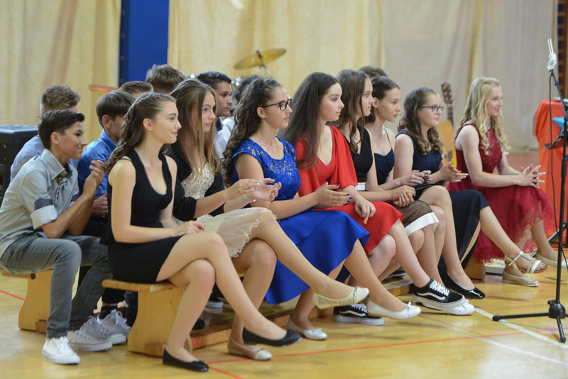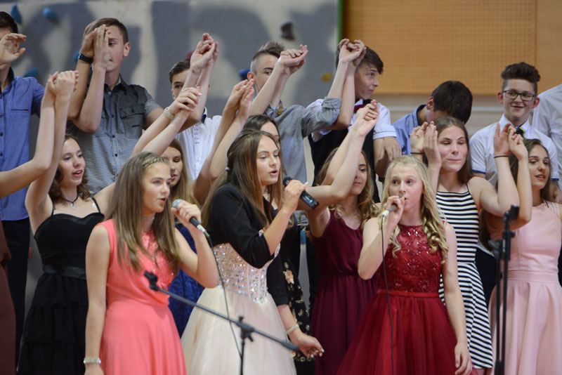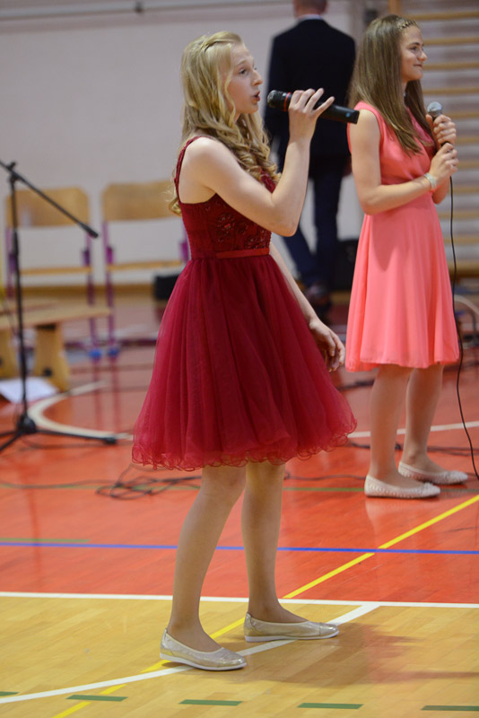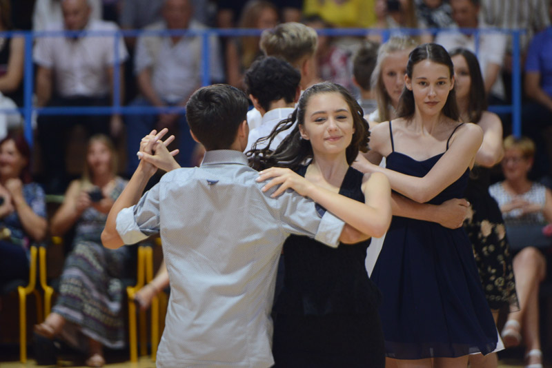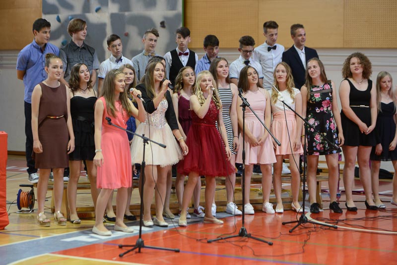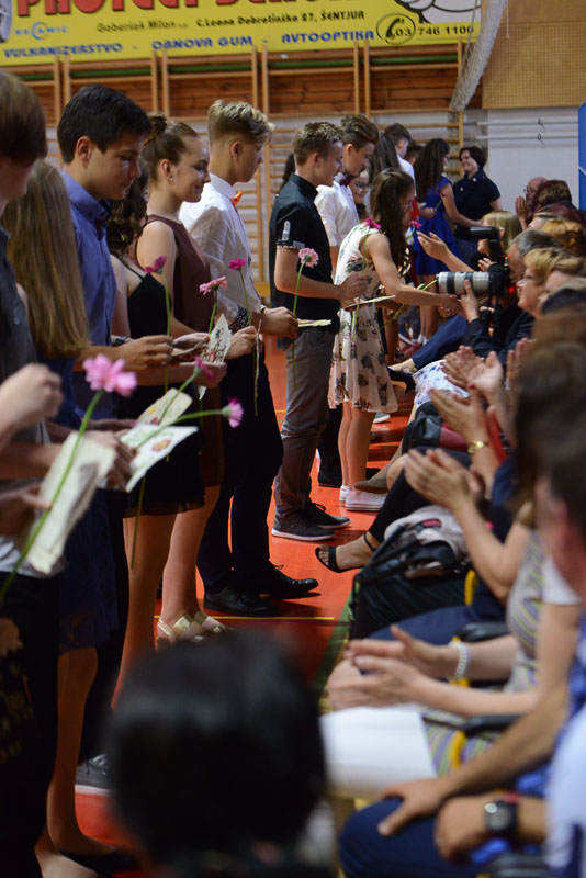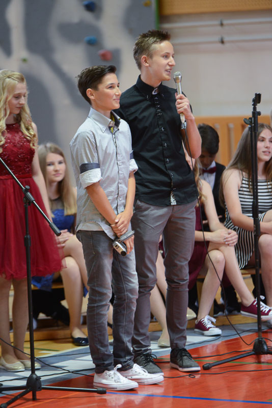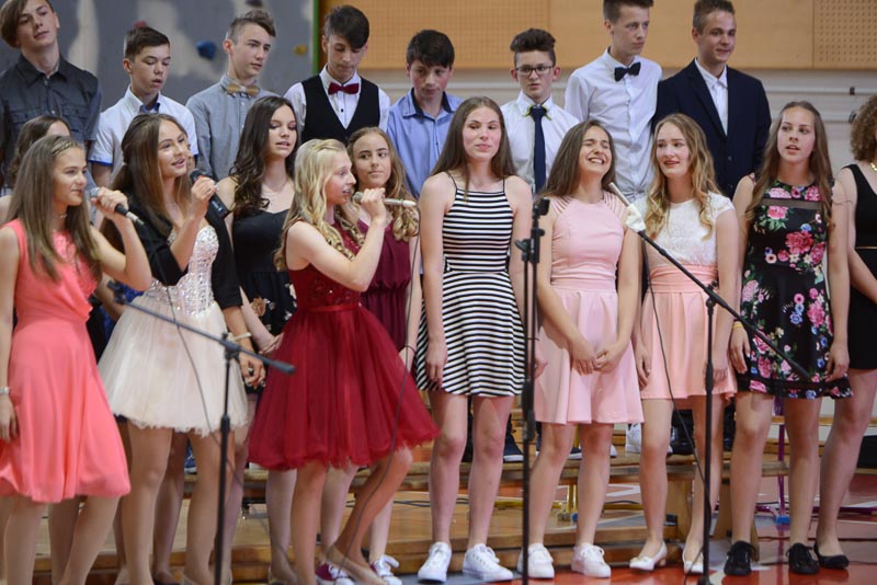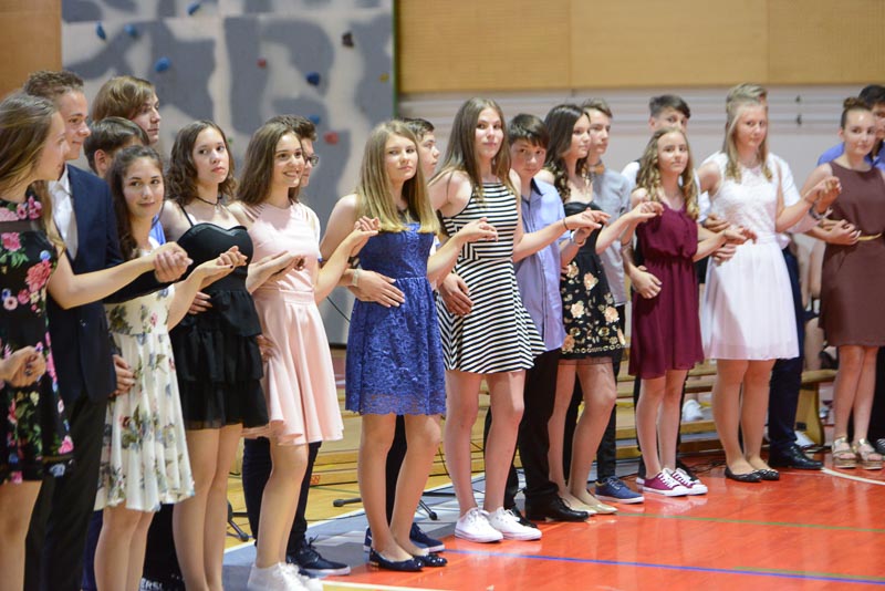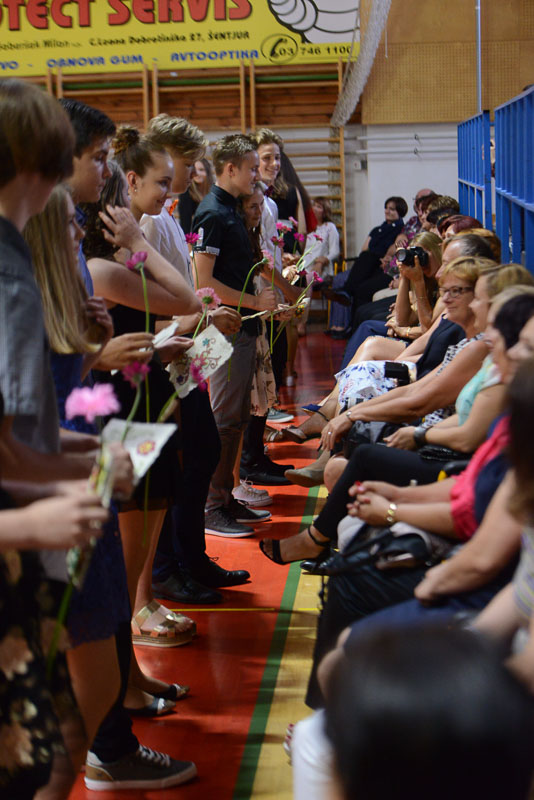 Šentjur, 15. 6. 2018 – Osnovnošolsko izobraževanje so devetošolci OŠ Hruševec Šentjur zaključili z valeto. Preden pa so se zavrteli s sošolci, so izvedli program, ki so ga pripravili sami. V dialogih med sabo so izpostavili nekaj uspehov, pa tudi vragolij, ki so jih ušpičili v času osnovnošolskega šolanja. Imeli pa so tudi nekaj tehničnih težav z ozvočenjem, predvsem zato, ker sta glavna “šolska ozvočevalca” tokrat nastopala na parterju hruševske telovadnice.