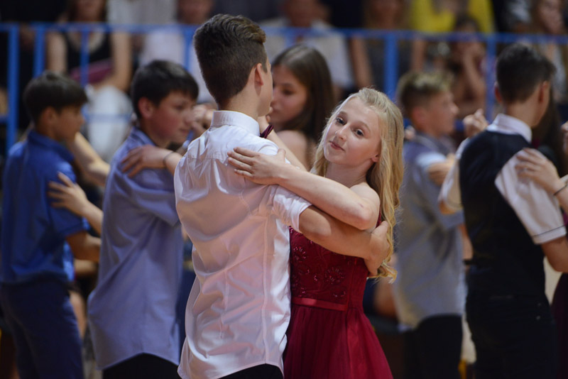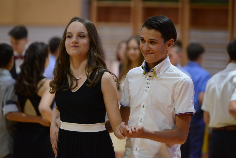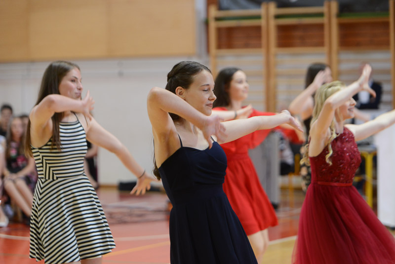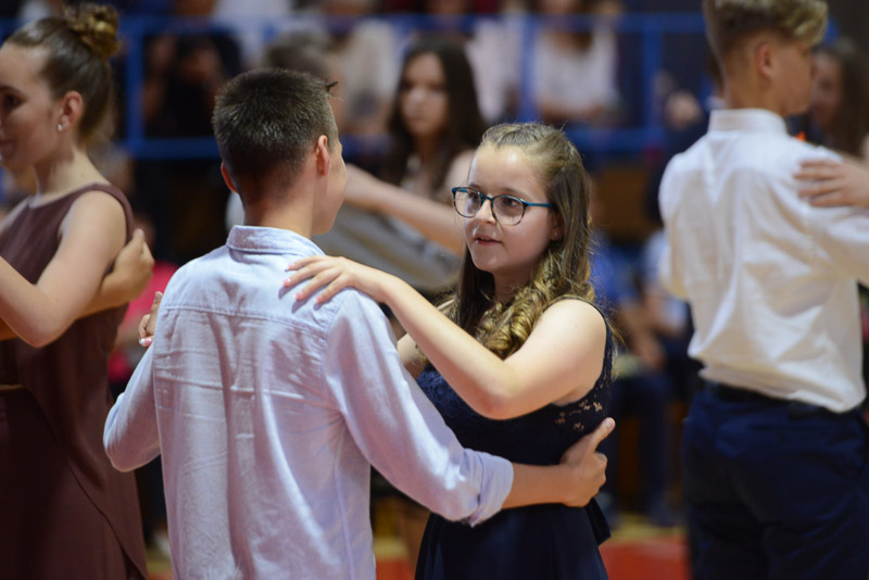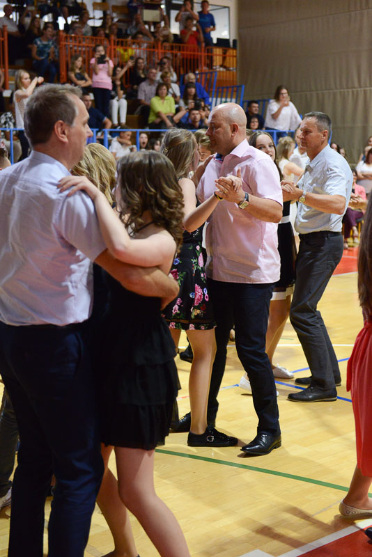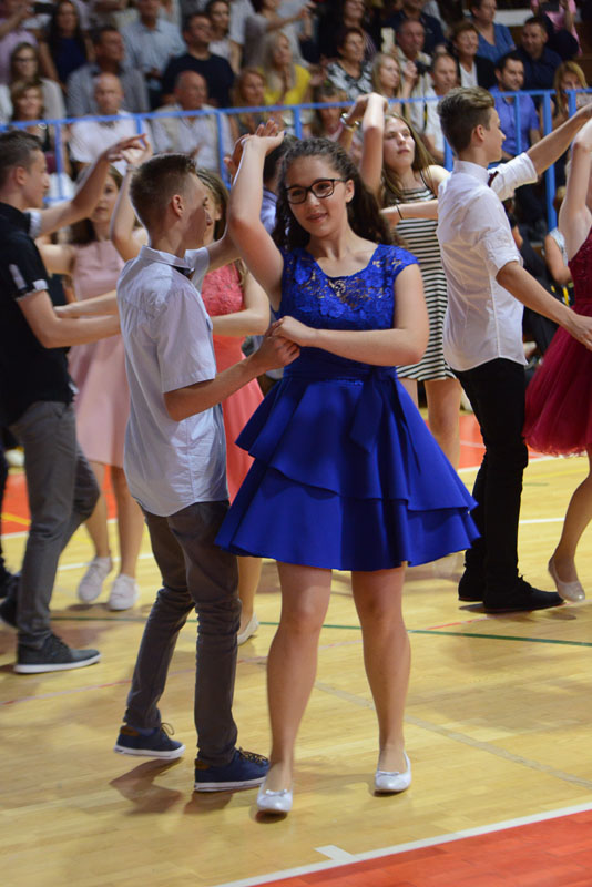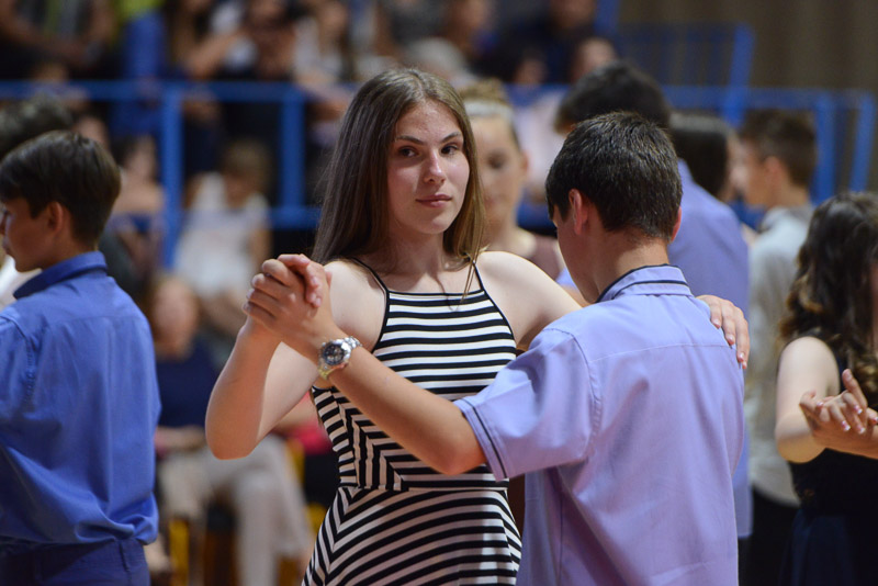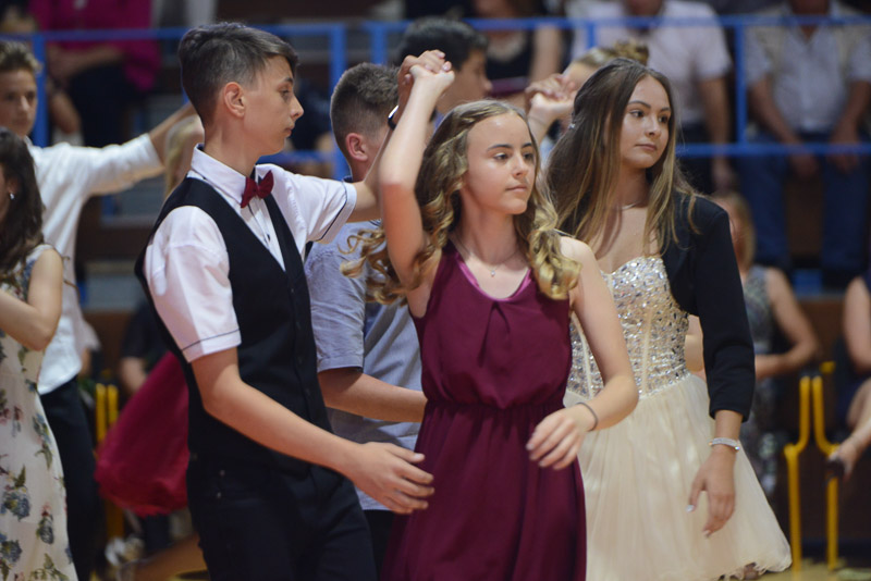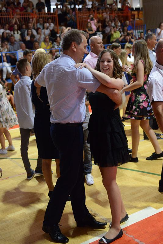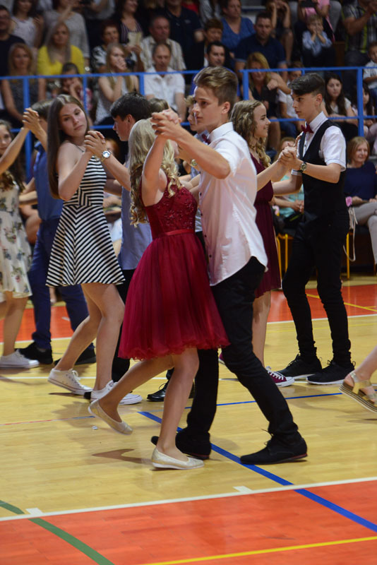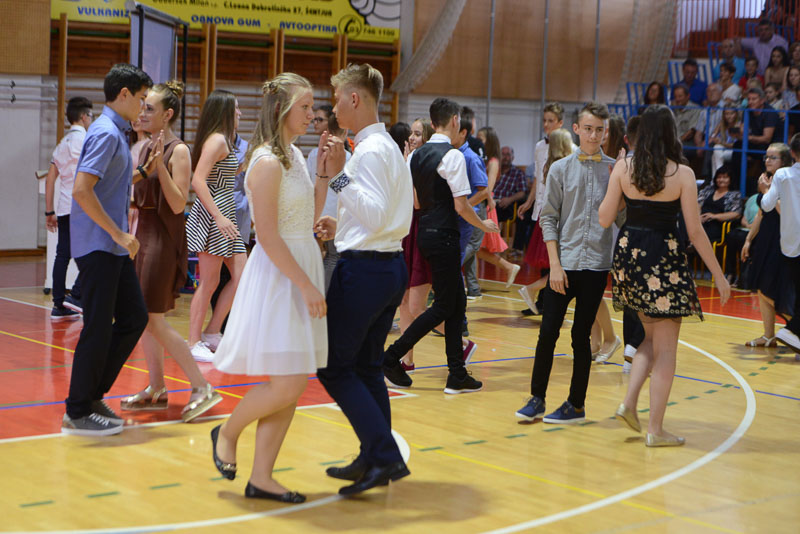 Po uradnem delu je sledil ples pod budnim očesom plesnega učitelja Boštjana Špiljarja. Zaplesali so tako četvorko kot standardne in latinskoameriške plese, ki so se jih učenci učili vse letošnje leto. Kakopak je na koncu valete sledil ples s starši in prejem zaključnih spričeval. (Jure Godler)