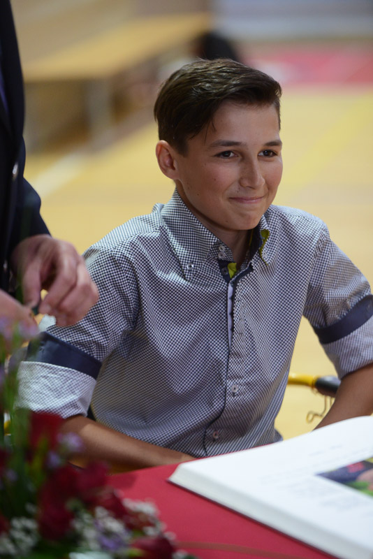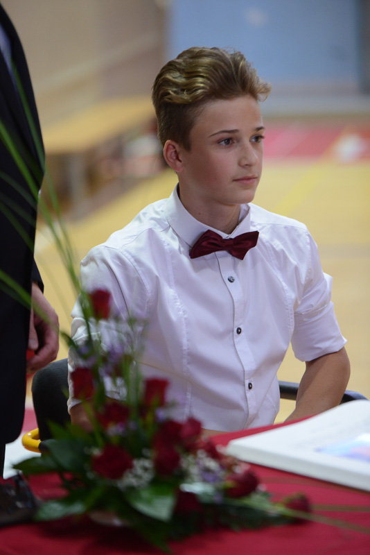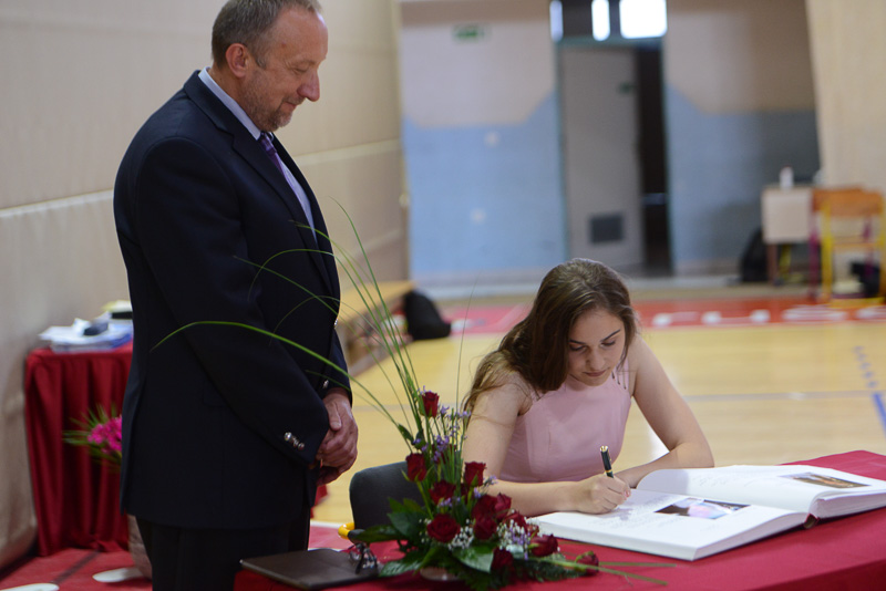 Zbrane starše in sorodnike je pozdravil tudi ravnatelj Robert Gajšek, ki je priznal, da se tokrat poslavlja iz osnovnošolskih klopi res izjemna generacija. V tej generaciji se je kar trinajst učencev izmed njih vpisalo v šolsko zlato kjnigo najboljših posameznikov, ki so briljirali na različnih področjih – tako učnih kot ostalih – od športnih uspehov, pa vse do uspehov na različnih tekmovanjih. V zlato knjigo so se vpisali Maja Jug, Tjaša Stojan, Klara Velenšek, Lea Centrih, Patricija Čokl, Janja Flis, Urban Grajžel, Nuša Hercog, Zoja Jegrišnik Siter, Maja Majcen, David Pšeničnik, Tanja Pšeničnik in Nejc Rezar. Naj športnici šole sta postali Maja Majcen in Nuša Hercog, naj športnika šole pa Urban Grajžel in Nejc Rezar. Devetošolci pa so generaciji za njimi tudi predali ključ.
