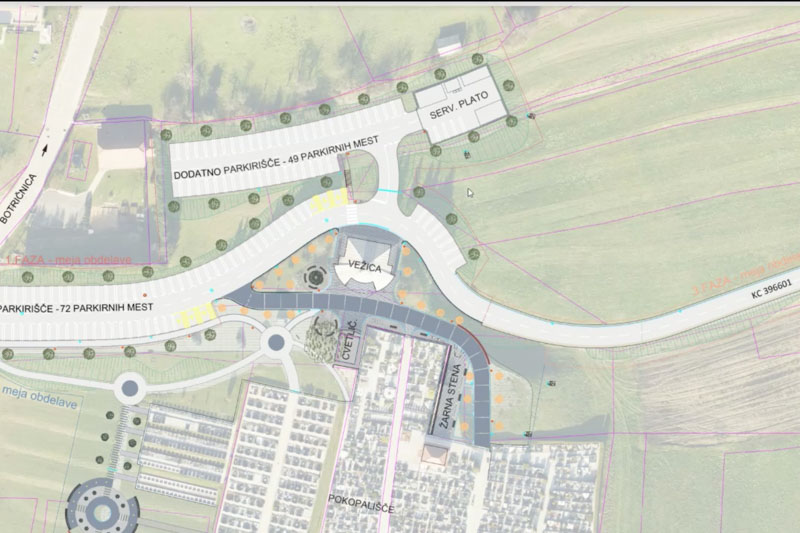 Projekt pokopališča v Šentjurju je predstavila projektantka Tamara Nunčič. Projekt zajema rekonstrukcijo obstoječe ceste, parkirišča in dela pokopališča. Obstoječe parkirišče se bo razširilo in zgradilo se bo novo parkirišče za mrliško vežico. S tem se bo zagotovilo 121 parkirnih mest. Izgradil se bo nov servisni plato za komunalne odpadke. Cesta se bo rekonstruirala v skupni dolžini 400 metrov. V sklopu projekta se bo uredilo tudi obstoječe pokopališče s sprehajano potjo z drevoredom. Kot novost se bo izgradila tudi žalna stena, ki jo sestavlajo betonski segmenti 111 žalnih niš, oblečenih v rjavkast granit. Žalna stena stoji na ploščadi granitnih plošč, kjer se lahko odvijajo verski obredi. Predviden pa je tudi prostor za raztros pepela. Celotno predstavitev si lahko ogledate TUKAJ. (Jure Godler)