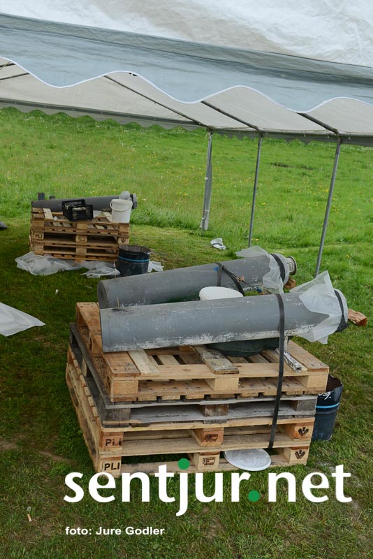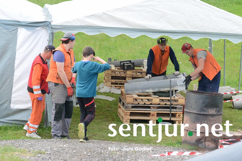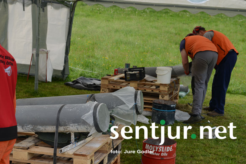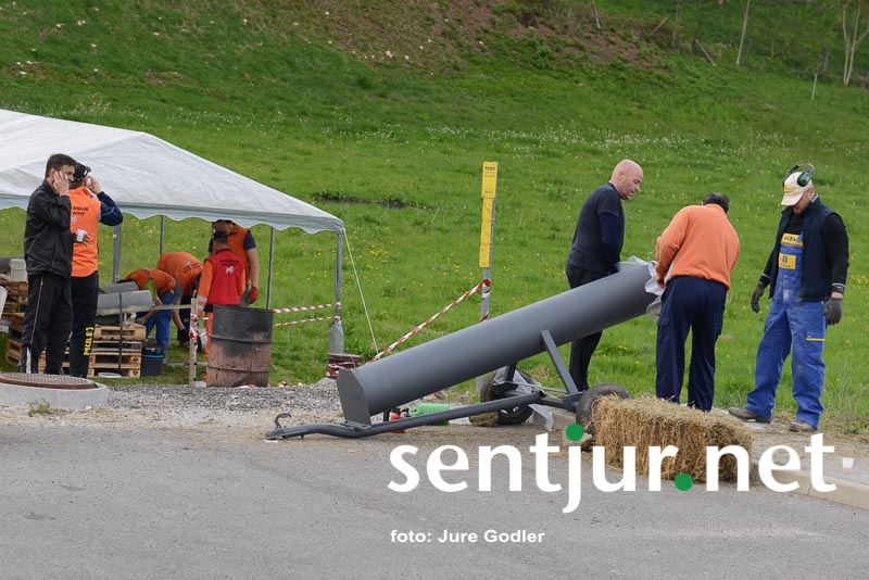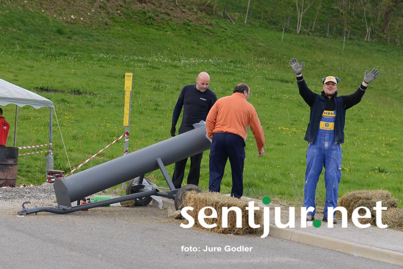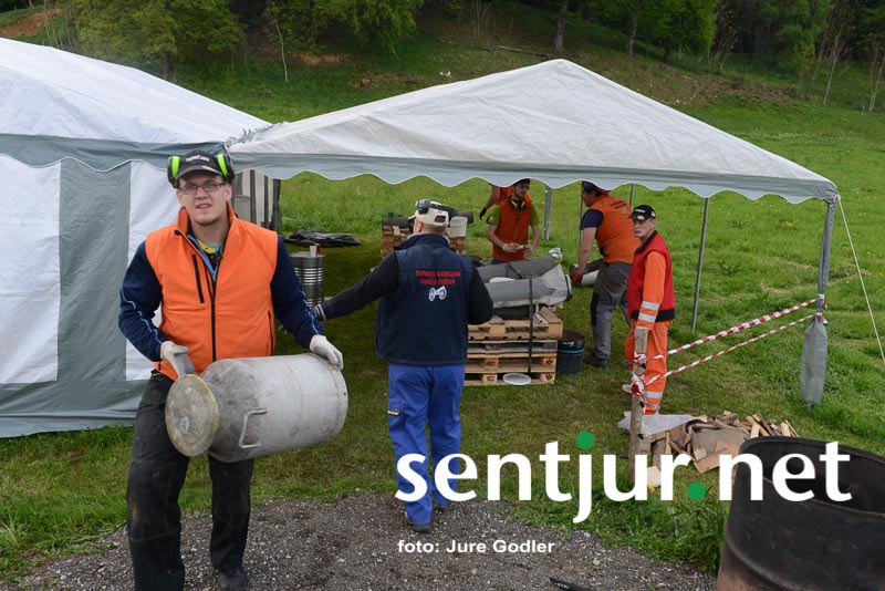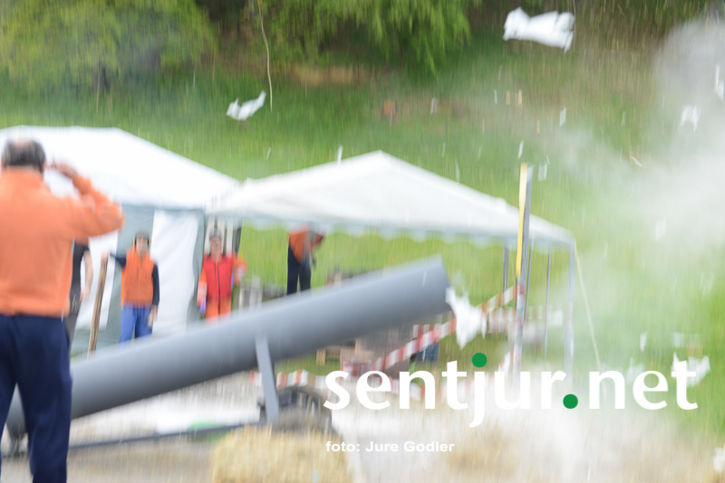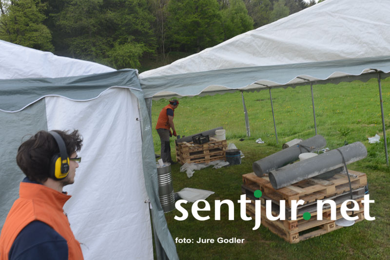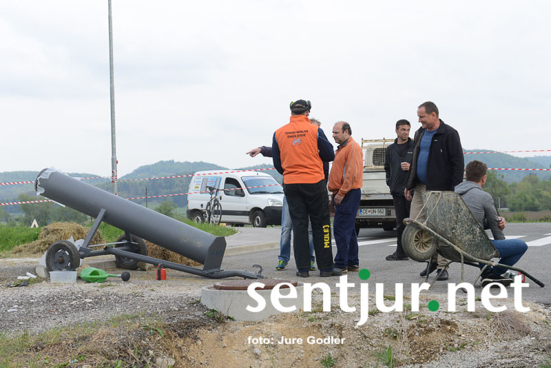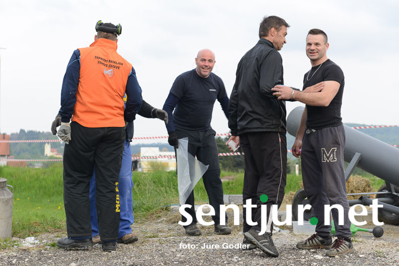 Šentjur, 15. 4. 2017 – Nekateri običaji, povezani z veliko nočjo, so se ohranili vse do danes, nekateri modernejši, kot je velikonočni zajček, pa so se tem običajem pridružili. Ena izmed teh navad je tudi strašenje Boga oz. strašnice, simbolizira pa potres, ki naj bi se zgodil ob času smrti Kristusa na križu. Ta običaj pa zvesto ohranja soseska Ulice Tončke Čečeve in širše. Že kot mladostnika sta Dejan Mulej in Goran Čolović začela pokati na bližnjem hribu z majhnim topom, danes pa je tovrstno njuno pokanje preraslo v pravo artilerijsko obstreljevanje. Trem topovskim cevem in dvema plinskima bombama se je letos pridružila “Debela Berta”, največji top v zbirki. Fantje so ga s pomočjo podjetja KOP sestavljali že mnogo prej in zmontirali nanj celo avtomobilski priklop in ga pripravili za različne nočne lokacije in bujenje Šentjurčanov. Letos so topničarji tudi premaknili divizijo izpred kapelice na bližnji travnik, pokanje pa posvetili Cvetki Mulej – Dejanovi mami, in celo v travo “zabrili” njeno ime. Da pa vse teče, kot bi moralo, je poskrbel Martin Zabukovšek, duhovni vodja topničarjev. Poskrbljeno pa je bilo tudi za primerno hrano in pijačo, saj se na Mulej-Čolovićevih strašnicah zbere dobesedno celotna ulica. (Jure Godler)