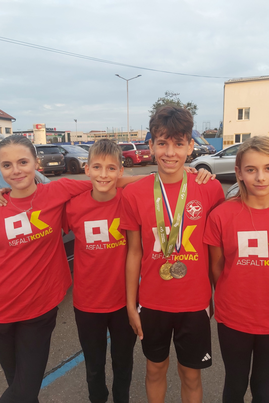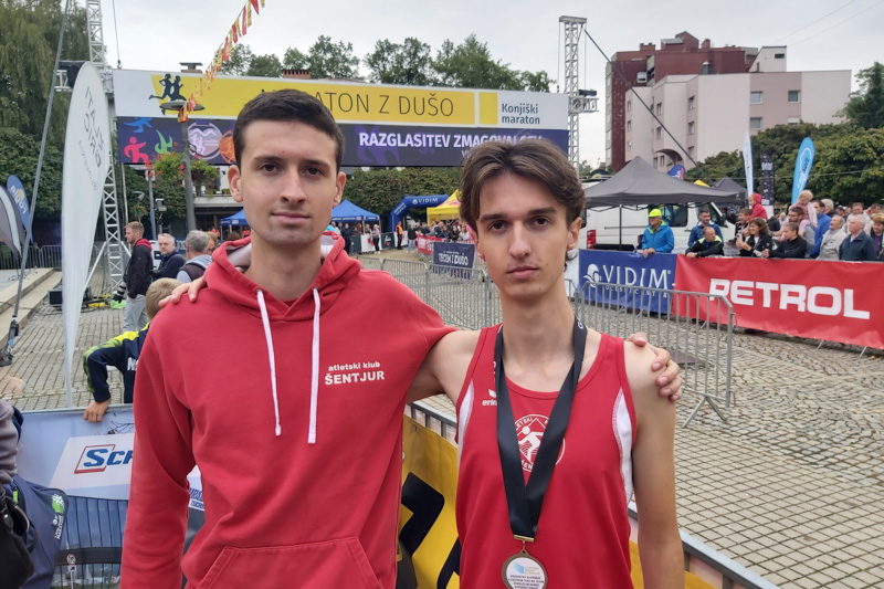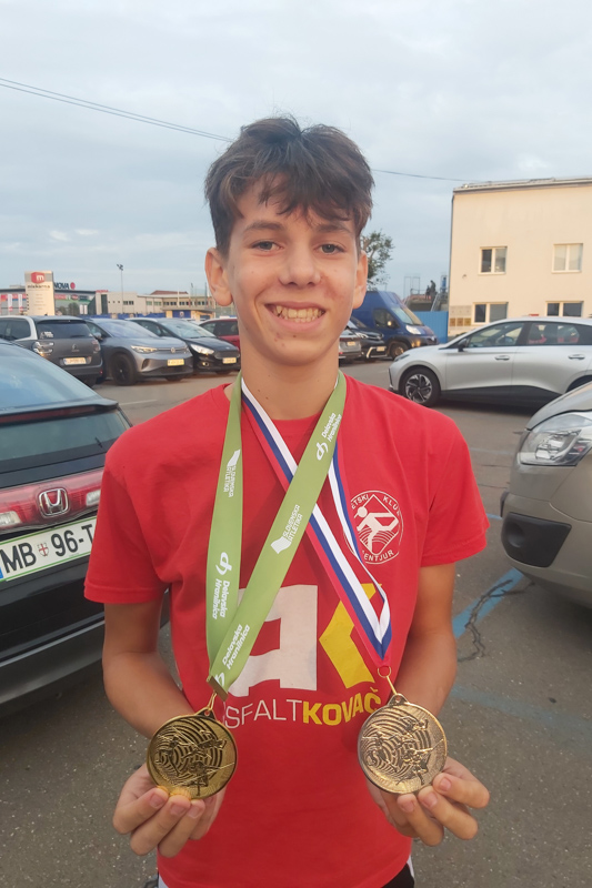 Slovenske Konjice, 28. 9. 2025 – Minuli konec tedna je bil za atlete Atletskega kluba Asfalt Kovač Šentjur znova zelo uspešen, saj so s slovenskih državnih prvenstev prinesli kar pet novih medalj. Kar tri je osvojil lanski drugi športnik Šentjurja in zlati maturant Filip Cmok (srebro na 5 km cestnega teka, zlato na 3 km na stezi ter srebro na 10 km cestnega teka) – vse v kategoriji starejših mladincev (U20). Dve odličji pa je dodal še Liam Čakš (zlato v skoku v daljino in srebro v teku na 60 m) v kategoriji P12 (letnik 2013). Manjkale niso niti številne druge visoke uvrstitve ter številni osebni in klubski rekordi.