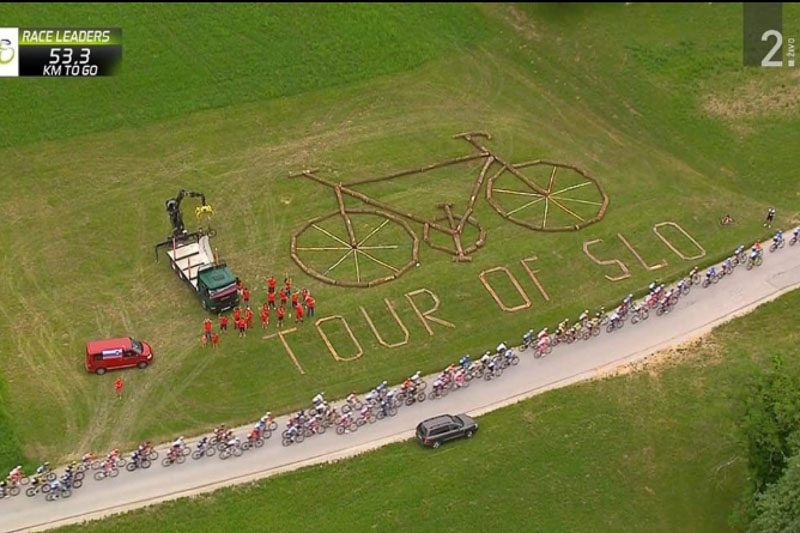 Šentjur, 19. 6. 2019 – Kolesarska dirka po Sloveniji poteka že 26 let zapored in sodi v najvišji rang tekmovanja v cestnem kolesarstvu. Že tretje leto zapored je za neposredni prenos poskrbela televizijska mreža Eurosport, ki je dirko snemala tudi s helikopterja. Letošnja dirka šteje pet etap. Današnja etapa je prva izmed njih. Kolesarji so štartali izpred Kongresnega trga v Ljubljani. Po skoraj treh urah sukanja pedal so pribrzeli do in mimo Šentjurja. Šentjur pa je bil predviden tudi kot bife postanek, kjer so lahko kolesarji zamenjali pijačo ali kaj malega prigriznili. Že ob 13. uri je helikopter predhodno posnel Rifnik, kjer so naši navijači izrisali ogromen napis Rifnik ter dodali zraven rifniško zvezdo. Izkazali pa so se tudi Planinčani in delavci podjetja Montpreis, ki so na hribu iz brun izdelali kolo ter ga okrasili z ogromnim napisom Tour of Slo. Za kar si zaslužijo veliko pohvalo.