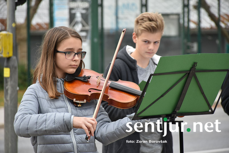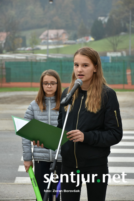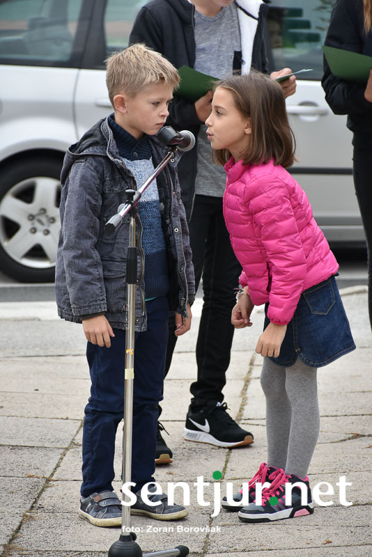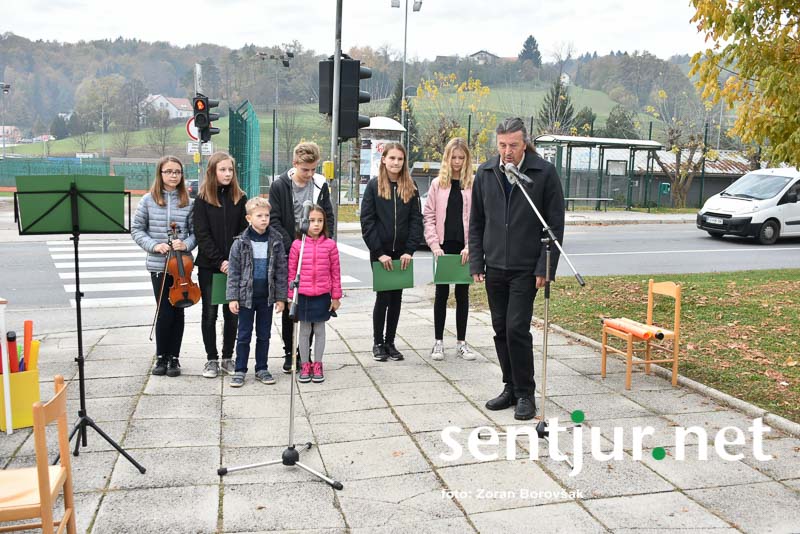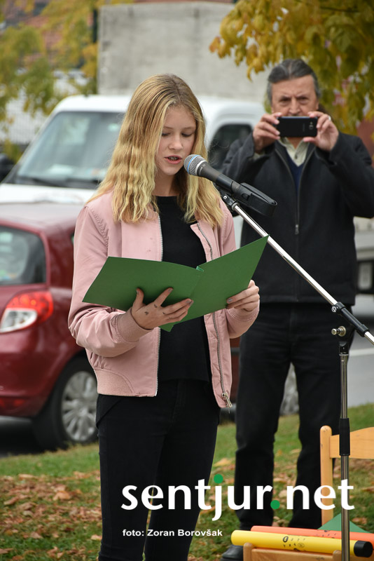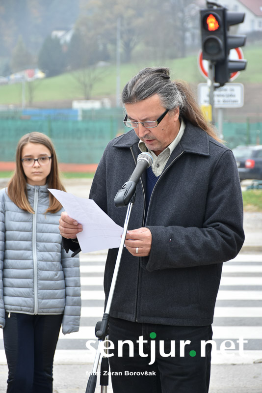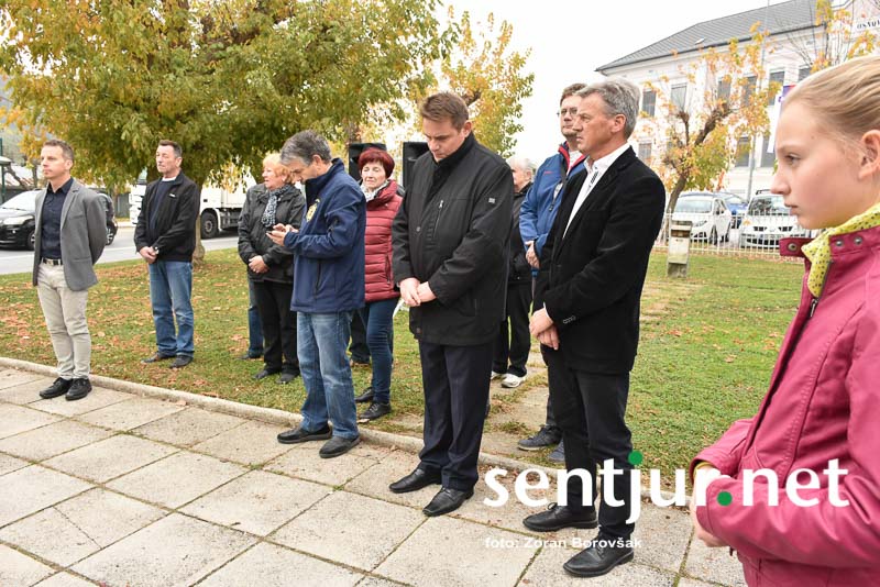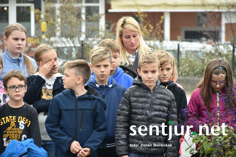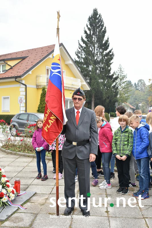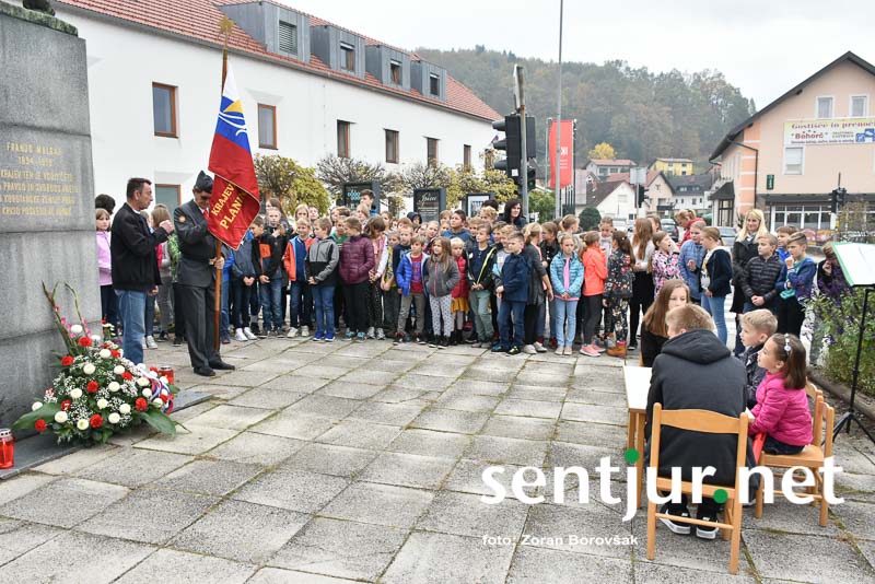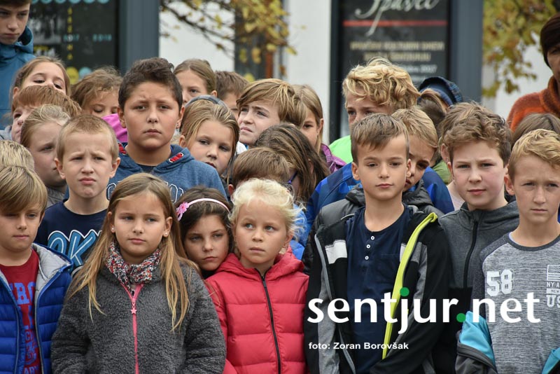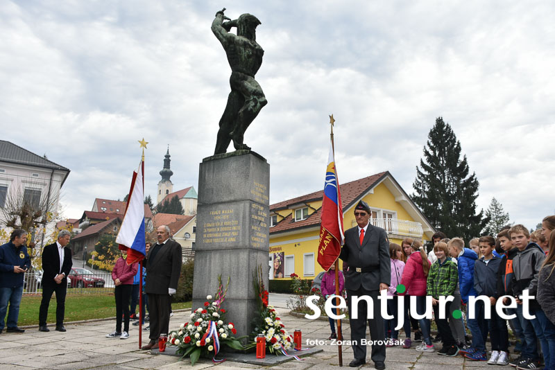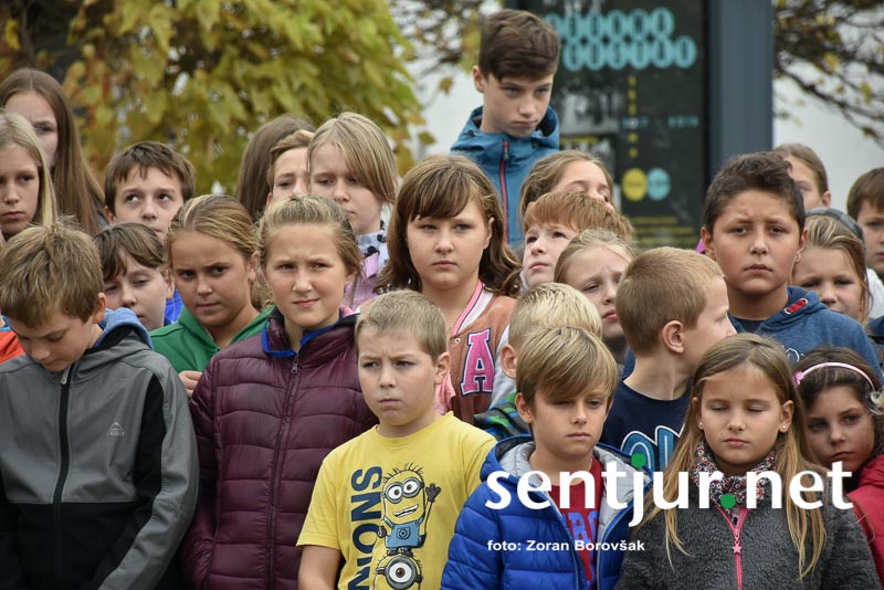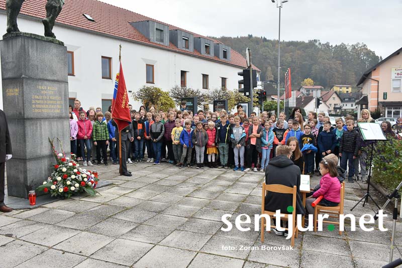 Šentjur, 27. 10. 2017 – Ob spomeniku padlih borcev so ponovno združili moči Združenje borcev za vrednote NOB Šentjur in OŠ Franja Malgaja Šentjur, kjer so ob spominu na mrtve pripravili krajši program. Za tokratni literarni in gledališki del sta posrkbeli učiteljici razrednega pouka Breda Skutelj in Mateja Boštjančič. Pred spomenikom, na katerega so naslonili venec, je spregovoril tudi predsednik združenja Ivan Dvoršek.