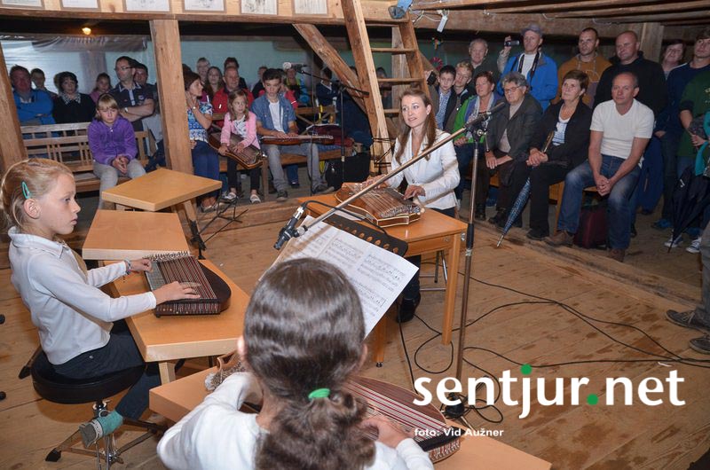 V Gledališču na ”cimpru”, kot so ga poimenovali, se je odvil citrarski koncert pod vodstvom Jasmine Levičar. O lepotah in zanimivostih Kozjanskega je odmevala tudi pesem sopranistke Martine Zapušek. Predstavili so se njeni učenci, ki so med počitnicami pridno ubirali strune in trenirali svoje prste. Prva se je tako predstavila Zala Koprivc, ki na citre igra že več kot pol leta. Citre so pri nas prvič omenjene konec 17. stoletja, kar pa ne pomeni, da glasbila niso poznali že prej. Citre iz tedanjega časa so precej drugačne od današnjih. Nastopila je tudi mlada citrarka Maruša Vidmar. Na harmoniko je zaigrala sedemletna Kristina Planko, za njo se je pridružila še njena sestrica Veronika, nato Iva, Janja, Sara, Zala in Ambrož, ki so skupaj zaigrali in zapeli znani melodiji Pod to goro zeleno in Beli cvet. Petju so se pridružili tudi obiskovalci. Nastopajoči so imeli to možnost, da so si sami izbrali skladbo za predstavitev. Tako je bil najbolj zanimiv zadnji narodno-zabavni del programa. Za konec druženja so skupaj zaigrali še Velo Luko in Tri planike, saj so hoteli na ta deževen dan pričarati sonce in morje. V zaključnem delu Veronikine sobote so se gostje pod velikim šotorom zavrteli ob zvokih Mladih upov. Zabava je trajala vse do pozne noči. Poskrbljeno je bilo tudi za jedačo in pijačo. (V. A.)