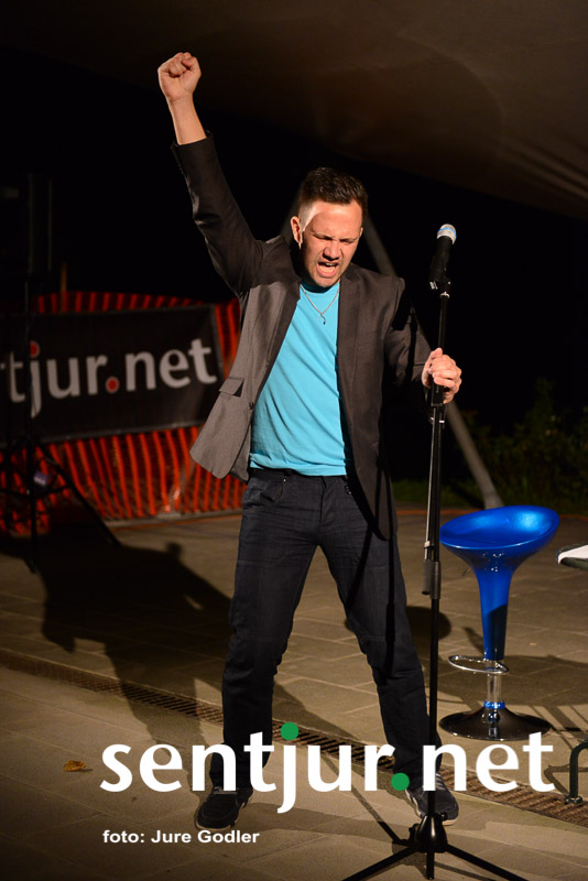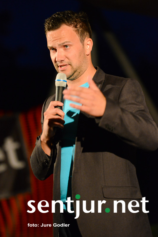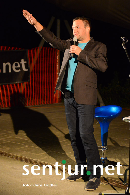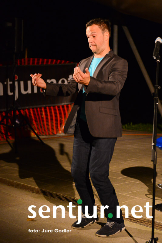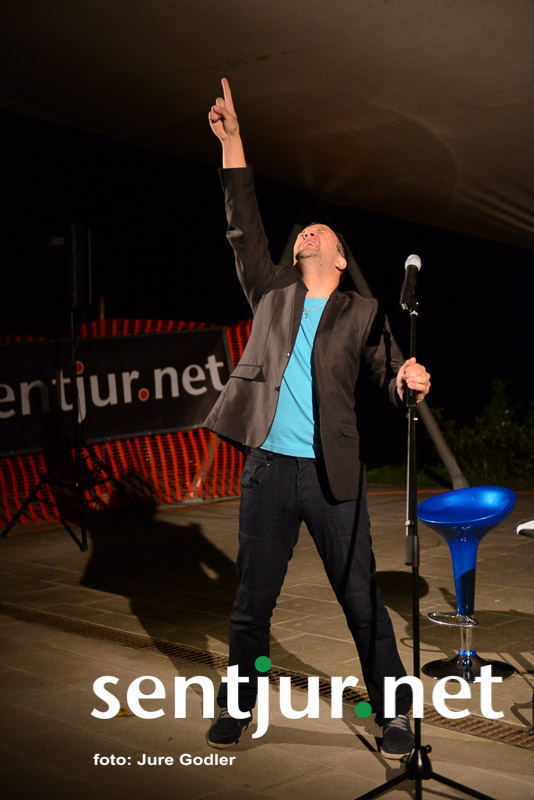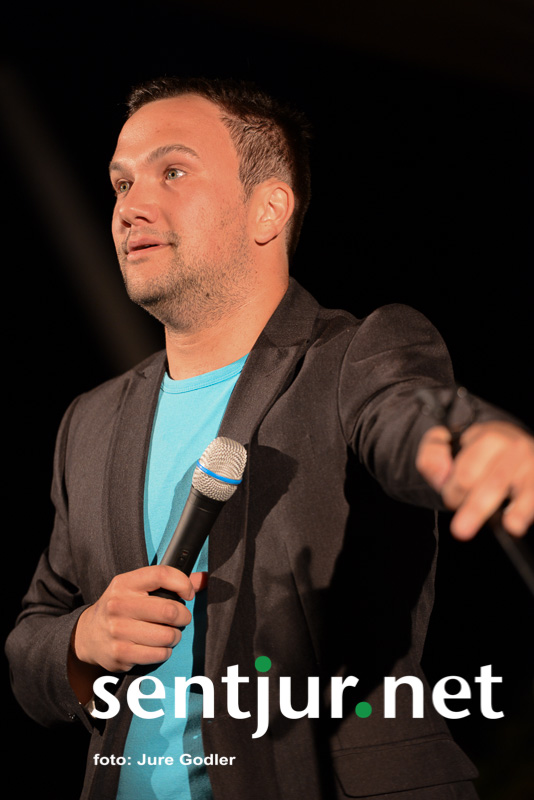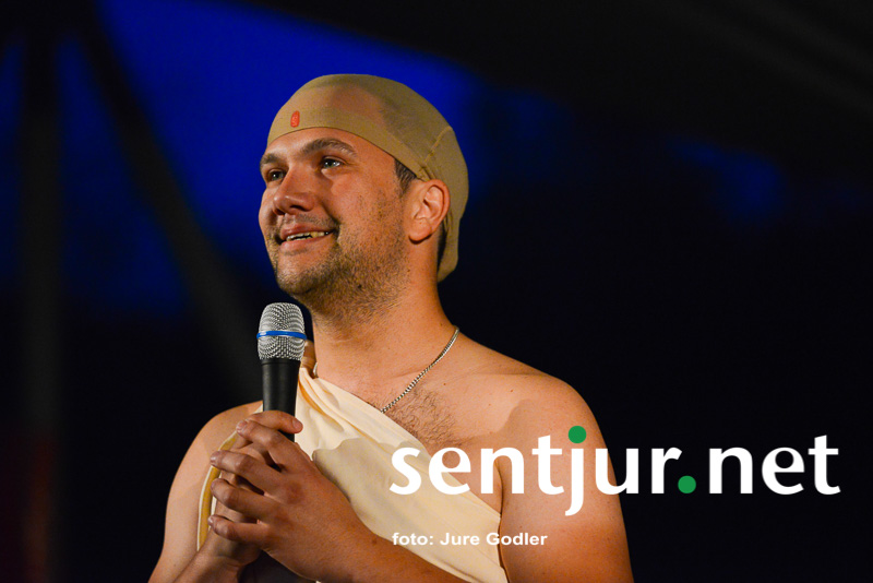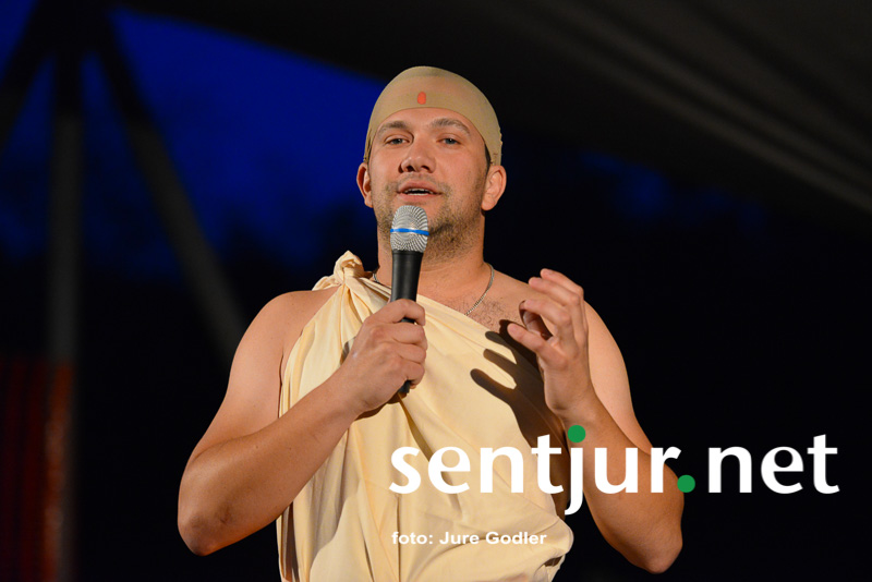 Šentjur, 29. 8. 2014 – Komedija in veder pogled na življenje vse bolj izginjata iz vsakdana ljudi. Tlačijo nas skrbi in vedno nekdo nad nami, naj je to žena, šef v službi, Bog ali pa le platno v letnem vrtu Ipavčeve hiše, ki se od včeraj naprej tudi napol uradno imenuje Šentjurske križanke – Sudoku. Tokrat je za spremembo organizatorjem naklonjeno tudi vreme in ni bilo potrebno uporabiti rezervne lokacije za premierno uprizoritev monokomedije Tomaža Koštomaja, ki nastopa pod umetniškim imenom Tom Costo (zadnje čase se sliši tudi ime Com Tosto). Alo, ti tam gori! je že njegovo drugo avtorsko delo. Ledino je oral z monokomedijo z naslovom Sej bo!. Letni vrt je bil ponovno lepo napolnjen in hladno vreme je šentjurski komik odganjal s salvami smeha. V njegovi komediji poslušalci ne dobijo občutka – že slišano, saj veliko zgodb črpa iz svojega življenja. Po svetu hodi z odprtimi očmi in beležnico v žepu in si zapisuje razmišljanja in dogodke. Že na začetku je obiskovalce pozdravil guru iz Indije, ki je napravil uvod za peščico rupij – postranski zaslužek kuharja v indijski restavraciji. Seveda pa ni mogel zaobiti niti odnosov moški – ženska ter človek – Bog. Za nameček pa se je dotaknil tudi našega že zloglasnega pomembneža Janeza z Doba. Na koncu so mu obiskovalci z aplavzom namenili še bis in minuto slave, ki jo je izkoristil za – igranje kitare. (G. J.)