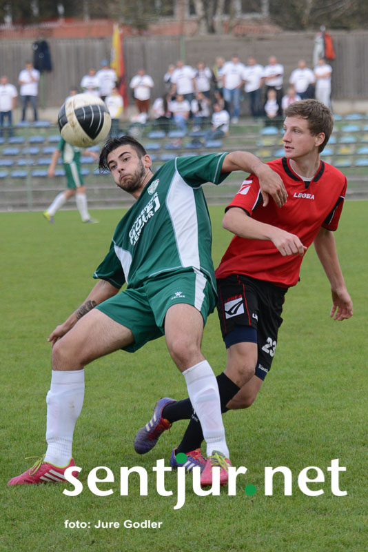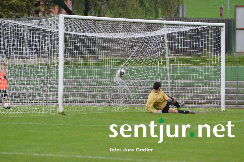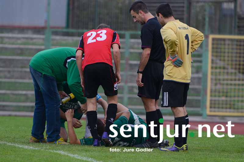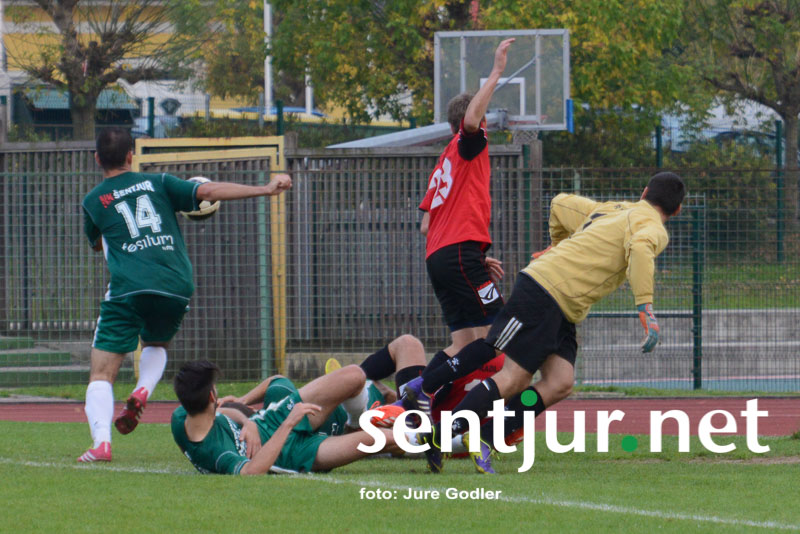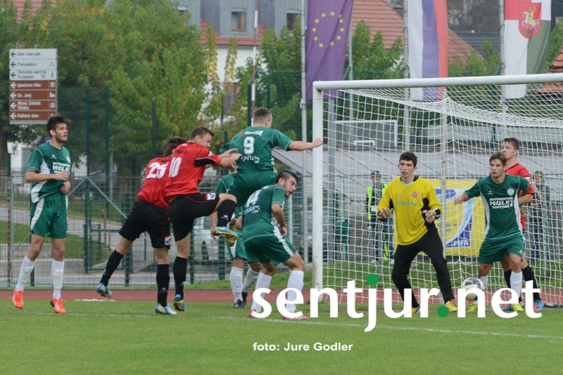 Šentjur, 4. 10. 2014 – Nogometaši Fosilum Šentjurja so v sedmem kolu 3. slovenske nogometne lige na šentjurski zelenici gostili nogometaše iz Radelj. Slednji so s seboj pripeljali tudi svoje navijače, ki so za svoje igralce navijali od prve do zadnje minute srečanja. Na tribuni je bilo ponovno opaziti manko šentjurskih navijačev, ki bi jih lahko prešteli na prste obeh rok. Po statistiki so bili gosti izredni favoriti, saj so pred to tekmo zasedali celo tretje mesto v ligi, naši pa so bili s petimi porazi na samem dnu lestvice. Morda je bil ravno to razlog, da so gostje stopili v tekmo dokaj ležerno. V pol ure srečanja se je igra odvijala predvsem na sredini igrišča brez večjih priložnosti na obeh straneh – naši do takrat niso sprožili niti strela proti vratom gostov. Nato pa je v 30. minuti sledil bliskovit napad Šentjurčanov, žogi pa je pot v gol preprečila prečka, a v drugem poskusu so gostje nad našim napadalcem storili prekršek v vratarjevem prostoru. Z bele točke je bil uspešen Miha Belak. Gostje so nato pritisnili in le bravurozne obrambe mladega vratarja Vasje Jurišiča so naše obdržale v prednosti do polčasa.