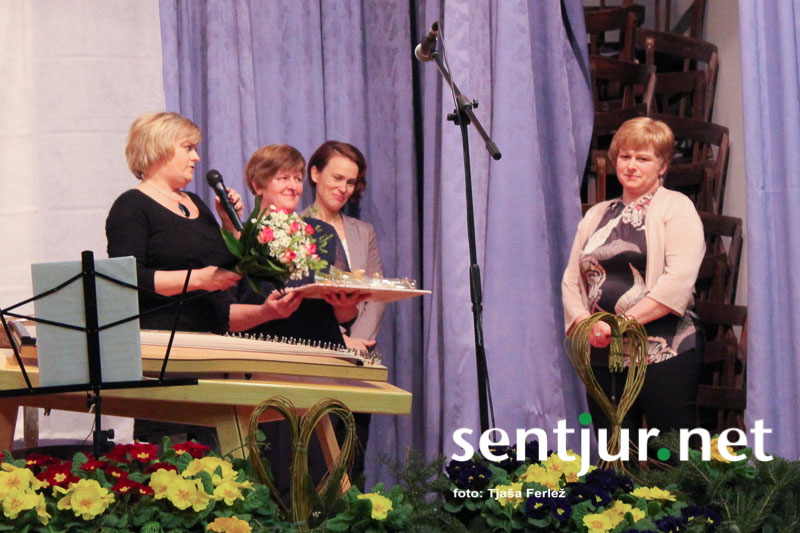 Da pa govornice niso samo govorile in obujale spomine, je v dvorani zapela tudi glasba. Večer so nam z glasbo polepšali moški pevci Rajske strune, Vokalna skupina Kresnice in citrarki Iva Čede in Ladica Drobne. Zbrane pa je na prireditvi pozdravil tudi župan občine Šentjur mag. Marko Diaci, direktor šolskega centra Šentjur mag. Branko Šket, predsednik Vinogradniškega društva Šentjur Jurij Malovrh, vinska kraljica sv. Helene Anamarija Mastnak in Direktor Kmetijske zbornice Slovenije, izpostave Celje Stanko Jamnik. Po večerji so članice upravnega odbora zarezale v torto velikanko.