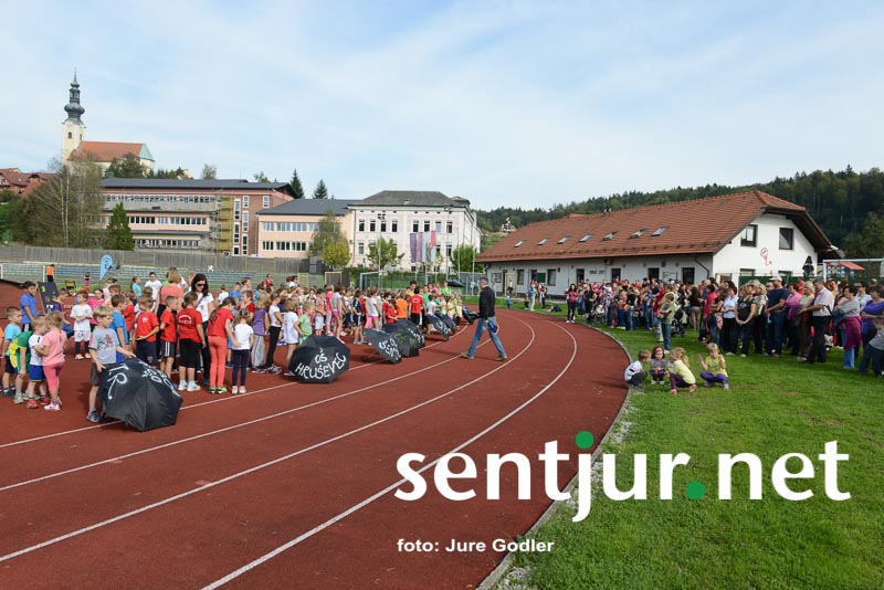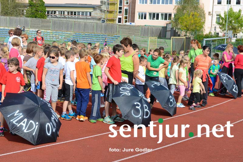 Šentjur, 20. 9. 2014 – Mini olimpijada je projekt Olimpijskega komiteja Slovenije. Soorganizatorji tega projekta so tudi lokalne športne zveze. Pri organizaciji letošnje, že šeste Mini olimpijade v Šentjurju, so poleg prvih dveh sodelovala tudi nekatera šentjurska društva – ŠD Pingvin Dramlje, Atletski klub Šentjur, Taekwon-do klub Ahac Šentjur in nekateri prostovoljci. Mini olimpijada je projekt, namenjen otrokom prve triade devetletke. Otroci na tej športno-družabni prireditvi spoznavajo različne športne discipline. Organizatorji dajejo velik poudarek tudi na fair playu. Moto mini olimpijad je: “Pomembno je sodelovati in ne vedno zmagati.”  Prireditev se je začela zelo olimpijsko – z mimohodom olimpijske zastave ter bakle, zaigrala pa je tudi olimpijska himna. Predstavnica olimpijskega komiteja je pozdravila 200 miniolimpijcev in vsaj toliko staršev. “Pomembno je, da starši podpirate otroke pri športnem udejstvovanju,” je nagovorila prisotne ter se jim zahvalila za udeležbo. Zbrane pa je pozdravil tudi predsednik Športne zveze Šentjur Vladimir Artnak.
