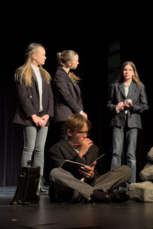 Pri ustvarjanju so sodelovali učenci kot igralci in zbor, ki skupaj oblikujejo odrsko celoto. V ospredju ni klasična zgodba, temveč preplet pesniških besedil, kolektivnega govora in odrskih podob. Takšen pristop omogoča, da Kosovelova poezija zaživi na drugačen način – kot skupinska izkušnja, ki presega individualno interpretacijo. Predstavo dopolnjujejo tudi glasbeni in zvočni elementi, ki ustvarjajo atmosfero in podpirajo besedilni del. Eden ključnih poudarkov predstave je vprašanje, komu so danes namenjene pesnikove besede. Odgovor, ki ga ponuja uprizoritev, je jasen: mladim. Tistim, ki iščejo svoj prostor v svetu in se soočajo z vprašanji prihodnosti. Projekt tako ni le poklon Kosovelu, ampak tudi izraz generacije, ki v njegovih besedah prepoznava lastne dileme. S tem predstava presega zgolj obeležitev obletnice in postaja aktualen komentar časa. (Jure Godler)