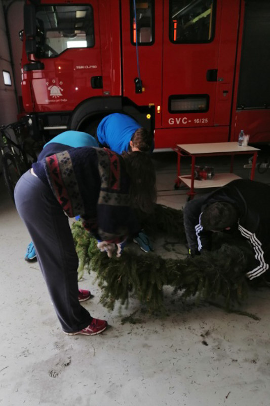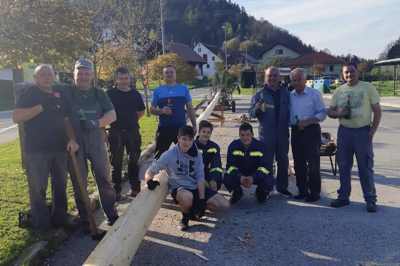 Ob podiranju in postavitvi so upoštevali navodila NIJZ, tako da ni bilo prisotnih več kot 10 oseb. Po opravljenih dejanjih so malicali zunaj in smreko pravilno zalili, da bo ostala zelena. Za malico z mesnimi izdelki je poskrbel domačin Jože Tučič, za vino je poskrbel predsednik vinogradnikov društva sv. Urban in predsednik gasilskega društva Milenko Tanšek skupaj z ostalimi člani in pripadniki PGD SLIVNICA in KS Gorica pri Slivnici. Ker pa mora biti pri vsakem delu prisotna tudi ženska roka, je Alenka Milenkovič priskrbela še ostale dobrote in brezalkoholno pijačo. Predsednik pa si želi, da se takšna humana in prostovoljna ter medgeneracijsko povezana dela ohranijo še naprej. (Tjaša Ferlež, foto: PGD Slivnica)