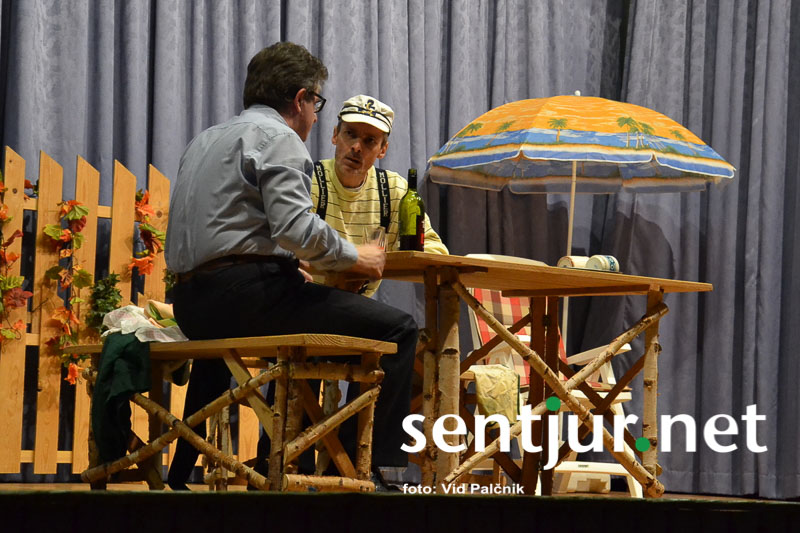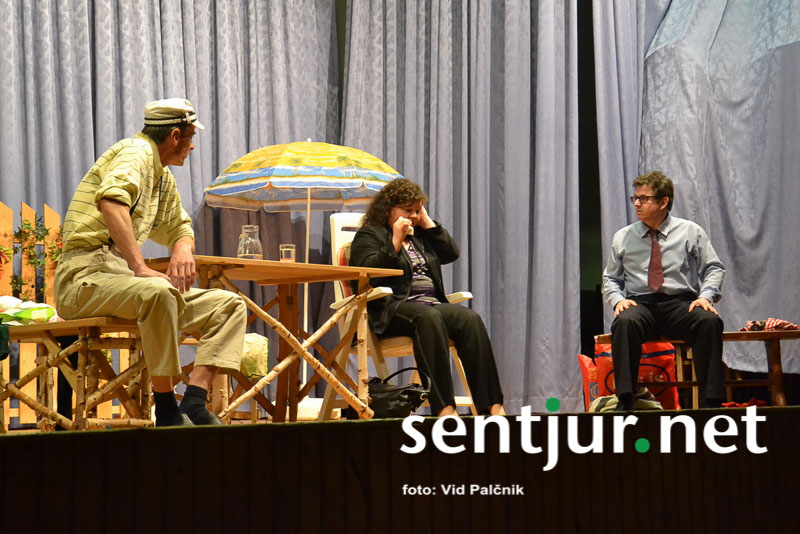 Po uvodnem nagovoru in voščilu ob novem letu predsednice DU, Zdenke Bevc Škof, je sledila dramska igra. Na odru so se odvile duhovite prigode treh glavnih akterjev, izmed katerih sta si dva moža delila isto ženo, pa tega sploh nista vedela. Preko jeze, obžalovanja, odpuščanja in ljubezni se zgodba odvije do te mere, da na novo spoprijateljena moža spoznata, da sta prevarana še s tretjim moškim. Vedno aktualna zgodba, kot so jo člani zasedbe poimenovali na gledališkem listu, je tako razgibala trebušne mišice polni dvorani KD Gorica pri Slivnici. Po kar dvourni predstavi je v avli sledilo druženje ob rujni kapljici in dobrotah domačink. (ViP)