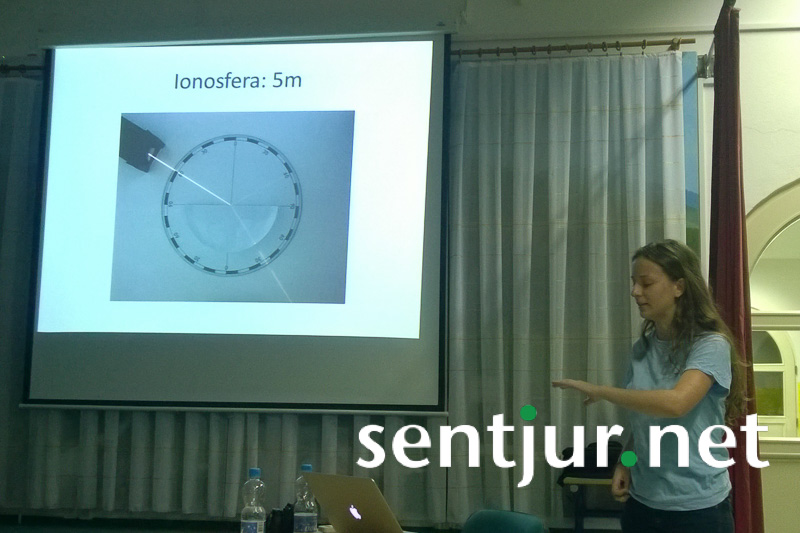 Beseda o četrti in peti temi strokovnega predavanja je tekla še o atomski uri in problemih satelitov, o katerih sta govorila Krištof Skok in Urška Andrenšek. Natančnost in točnost, definicija sekunde in napake v GPS-sistemu ter gibanje satelitov so teoretični del dogodka pripeljali večer do zaključka. Zunaj se je naredila že tema, na dvorišču pa so čakali nameščeni teleskopi, ki so jih Kosci najprej usmerili proti nebu, nato pa je sledilo opazovanje nočnega neba in druženje pod zvezdami. Noč je bila dokaj jasna, obiskovalci pa so bili zelo zadovoljni tako s predavanji kot z opazovanjem neba pod strokovnim vodstvom. V kupoli so si med drugim lahko ogledali tudi fotografsko razstavo, poskrbljeno pa je bilo tudi za najmlajše, ki so pod vodstvom Nine in Katje na temo astronomije lahko ustvarjali risbice. Domače kulturno društvo je poskrbelo za prigrizek in pijačo. (Majda Rezec)