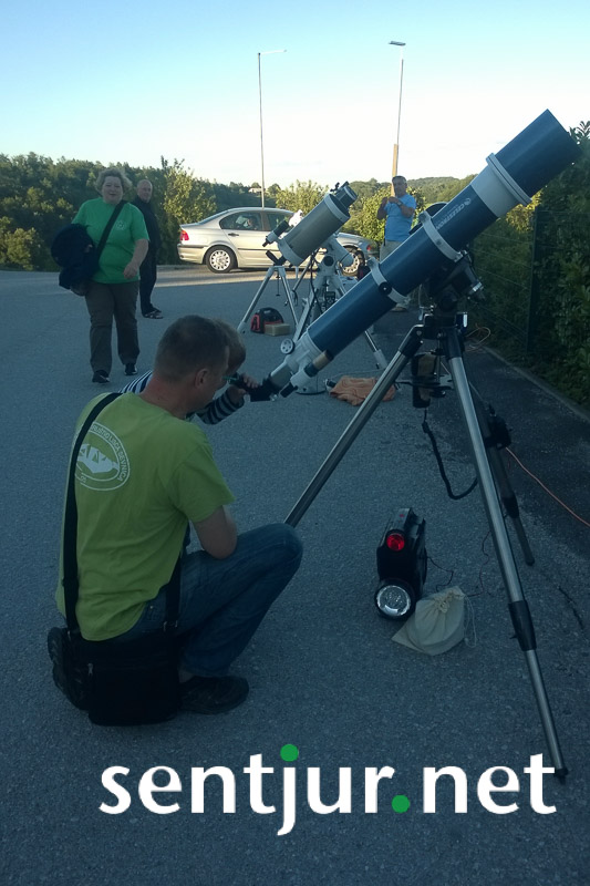Prevorje, 1. 7. 2017 – Na Prevorju je na prvo julijsko soboto v organizaciji Astronomskega društva Kosci in Kulturnega društva Prevorje potekala že 15. Astronomska noč. Številni obiskovalci so najprej v večnamenskem prostoru tamkajšnje šole prisluhnili strokovnemu predavanju, nato pa s pomočjo teleskopov raziskovali nočno nebo.