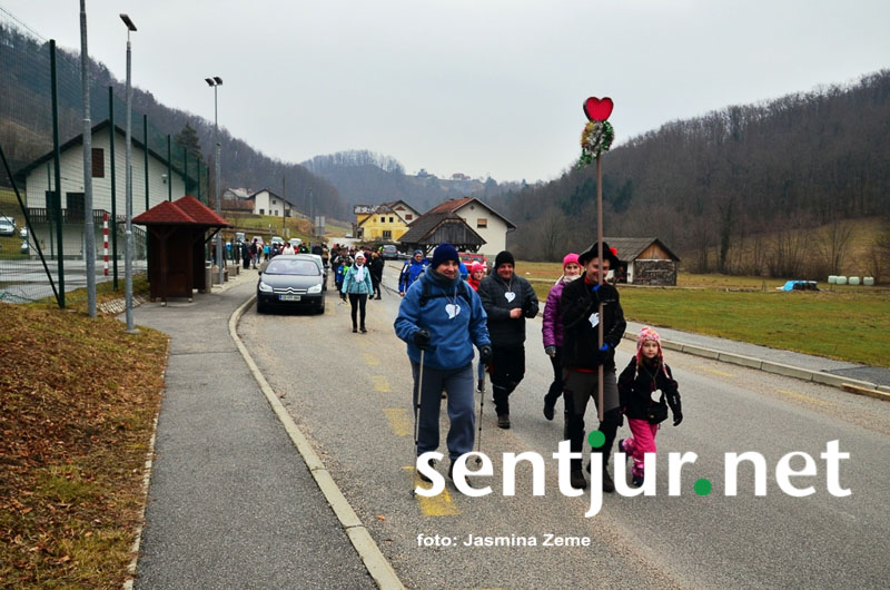 Dobrina, 11. 2. 2017 – Valentinov pohod iz Dobrine na Žusem že 21 let privablja mlajše in starejše pohodnike iz bližnjih vasi, pa tudi iz Šentjurja, Celja in drugih krajev. Organizatorji so se z obdarovanjem najmlajšega in nastarejšega pohodnika ter Valentine/-a ali Zdravka, z vodičem Brankom Kovačem, okrepčili na poti in so z molitvenim srečanjem v cerkvi sv. Valentina sledili tradiciji. Kljub temu je bil letošnji, 21., valentinov pohod nekaj posebnega. Pričel se je podnevi, zaradi česar je po mnenju organizatorjev privabil nekoliko manj obiskovalcev, pa vendar so ti v tem našli prednost – ogled okoliških gričev, ki jih ponuja pogled z vrha Žusma.