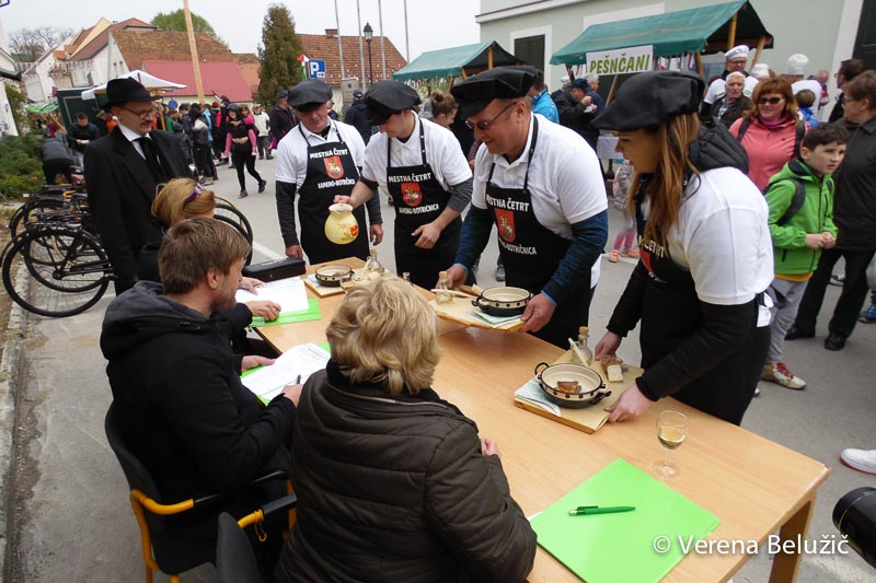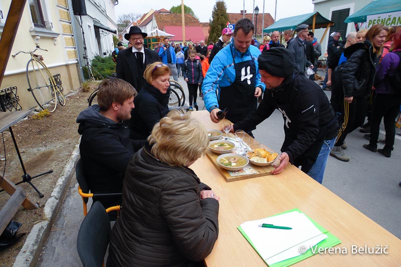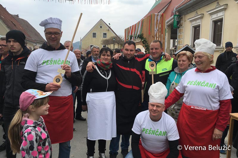 »Pešnčani« so skušali komisijo prepričati z naravnimi sestavinami z domačega vrta in okolja – lokalno pridelano zelenjavo. Dodali so še malo šentjurskega »vinčka«, veliko dobre volje in ljubezni do slovenske hrane: »V veliko veselje in čast nam je, da lahko kuhamo preprosto štajersko kislo juho.«