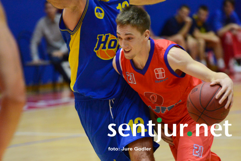 Šentjur, 22. 11. 2014 – Košarkarji Tajfuna so tokrat v domači dvorani OŠ Hruševec Šentjur gostili ekipo Hopsi s Polzele, v kateri igrata tudi reprezentanta bradati Samo Udrih in Goran Jagodnik. Zaporedne zmage Tajfunovcev so povzročile nabito polno dvorano, na tekmo pa je poleg lokalnih novinarjev in fotografov prišla tudi TV Slovenija. Naši so začeli podjetno, saj ko so gosti prvič pogledali na semafor, so naši že vodili s petimi in sedmimi točkami naskoka. Igra, ki jo je uspelo vzpostaviti Šentjurčanu Dejanu Mihevcu, bazira predvsem na akcijah, prodorih pod koš in ne toliko z obupnimi meti za tri točke, ki smo jih gledali prejšnje sezone. Uspešne akcije in zabijanja pa so tudi povod za bučno navijanje in skandiranje, ki ga v Šentjurju ne manjka, sploh če domača ekipa zmaguje. Domači so zaigrali pod obema košema naravnost fantastično in Polzelanom niso dovolili dihati ne v napadu ne v obrambi. S predano igro so naši gladko dobili vse četrtine in semafor je po preteku 40 igralnih minut kazal 81:59.