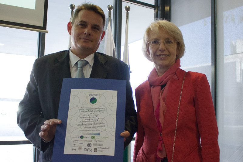 Šentjur, 13. 10. 2017 – Občina Šentjur se je v letu 2017 prijavila na natečaj društva Planet Zemlja za prejem naziva Planetu Zemlja prijazna občina in v okviru izbora v kategoriji do 10.000 prebivalcev dosegla visoko priznanje. Priznanje je na podelitvi 12. oktobra v Ljubljani prevzel župan mag. Marko Diaci.